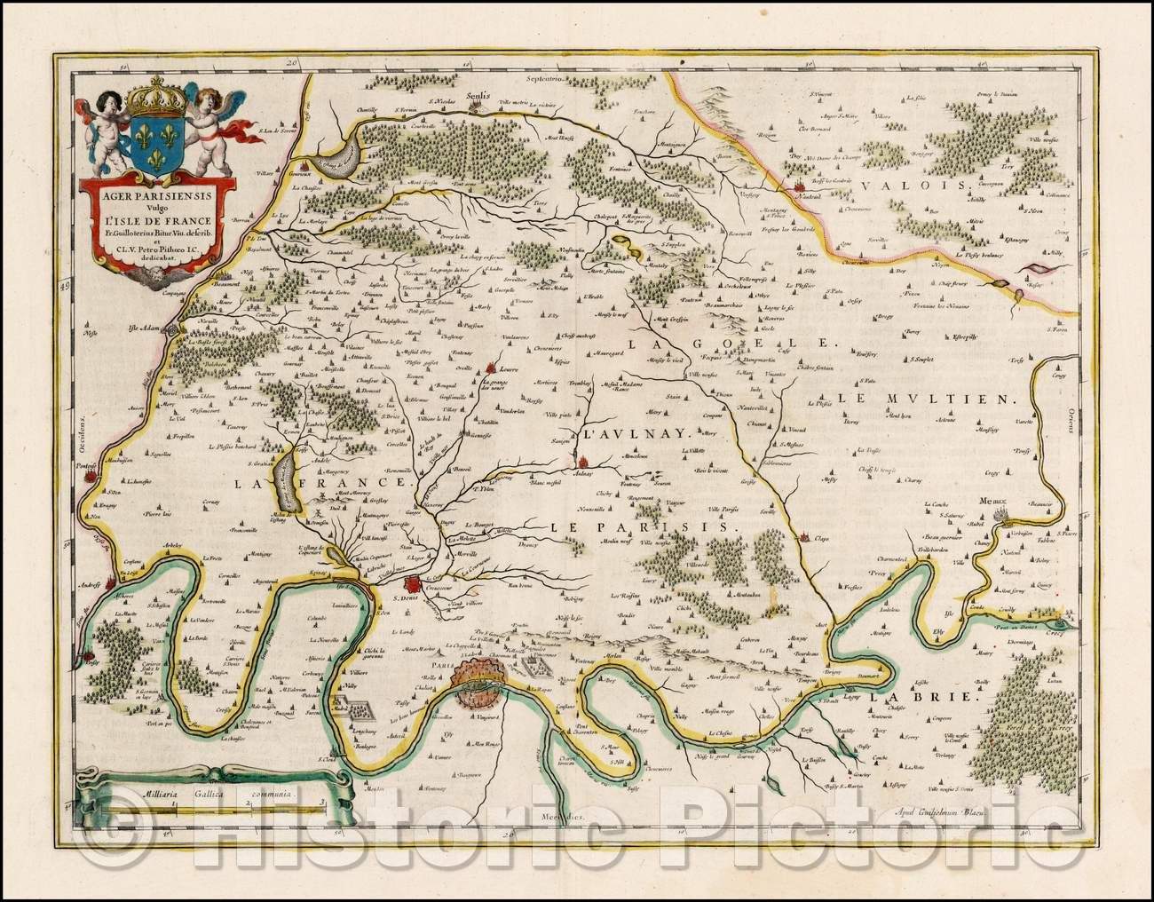 Historic Map - Ager Parisiensis vulgo l'Isle de France/The field of Paris called L'Isle de France, 1640, Willem Janszoon Blaeu - Vintage Wall Art