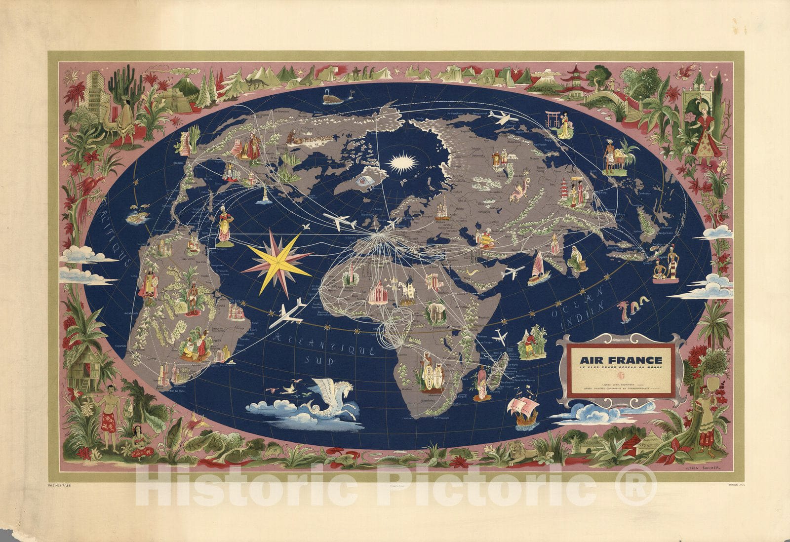Historic Map : Air France, Le Plus Grand Reseau ou Monde. Ref.21.433/P/3.61. Printed in France. Perceval - Paris. - Vintage Wall Art