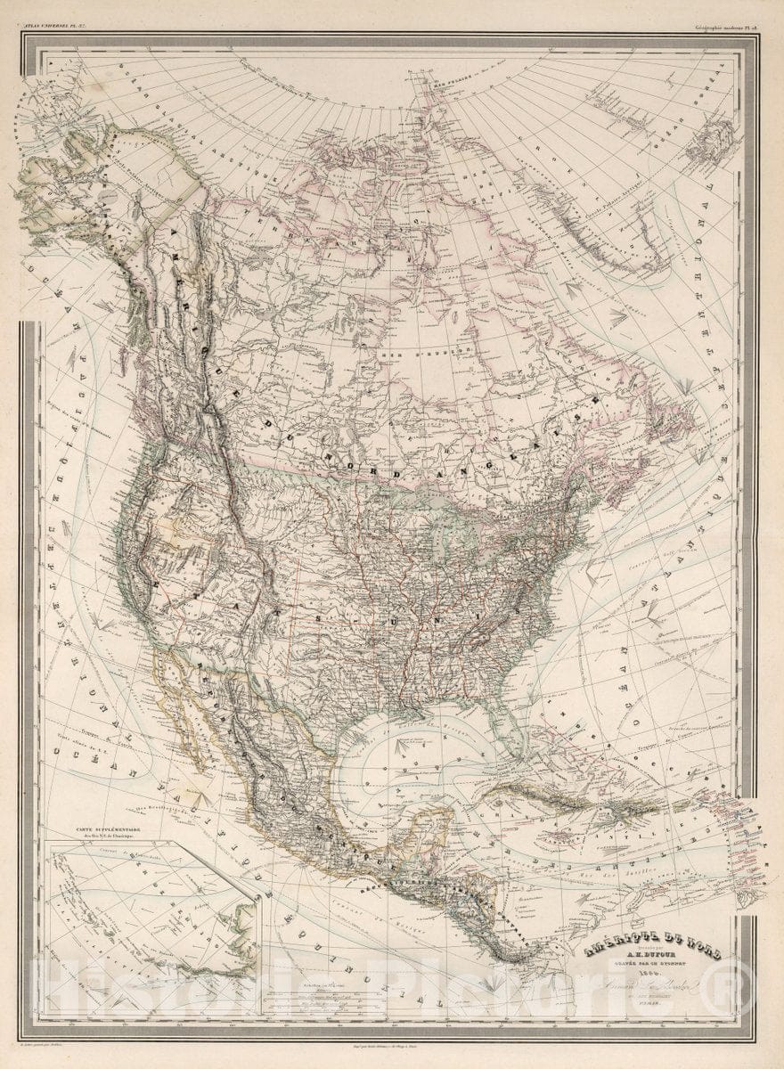 Amerique du Nord : Dresse par A.H. Dufour. Gravee par Ch. Dyonnet, 1864. Armand Le Chevalier, 60, Rue Richelieu, Paris. La Lettre gravee par Deletre. Impe. par Louis Antonie, r. de Cluny 1, Paris. (inset) Carte supplementaire des Iles N.E. de l'Amerique. (to accompany) Atlas Universel, Physique, Historique Et Politique De Geographie Ancienne Et Moderne. Pl. 37. (on upper margin) Geographie moderne. Pl. 28. | Atlas Universel, Physique, Historique Et Politique De Geographie Ancienne Et Moderne. Compose Et Dresse Par H. Dufour. Grave Sur Acier Par Ch. Dyonnet ... Paris, Armand Le Chevalier, Editeur, Rue Richelieu, 60. (green paste down label) L'introduction de cet ouvrage dans les etablissements d'Instruction publique est autorisee par decision de s. Exc. M. Le Ministre De L'Instruction Publique, en date du 8 decembre 1863. | Publisher:Armand Le Chevalier