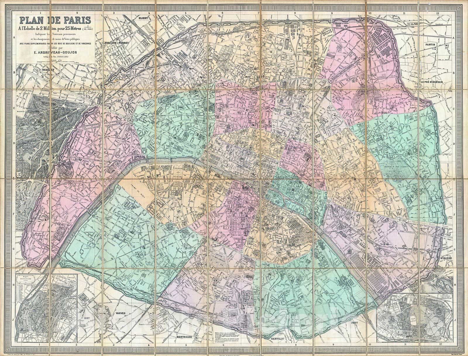 • .Historic Map : Andriveau, Goujon Pocket Map of Paris, France, Version 2, 1882, Vintage Wall Art