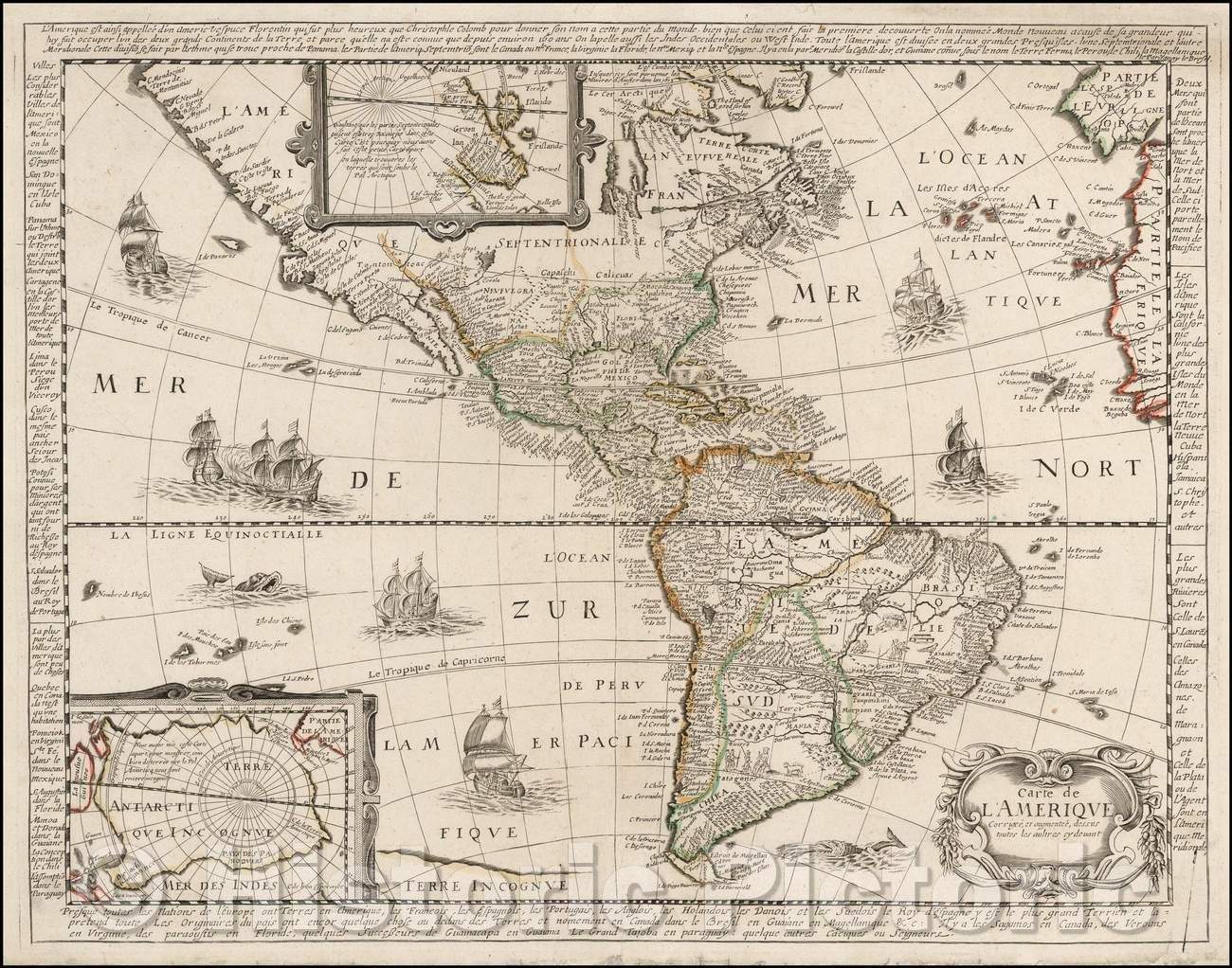 Historic Map - Carte de L'Amerique Corrigee et augmentee dessus toutes les autres ey devant/Map of America, first published in Paris in 1658, 1658 - Vintage Wall Art
