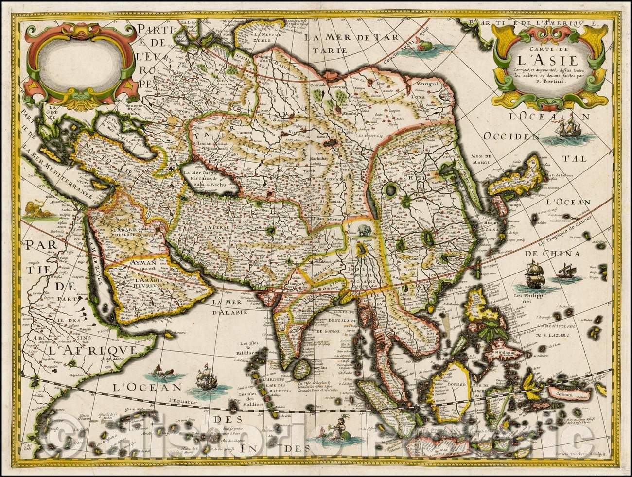 • .Historic Map - Carte de L'Asie Corrigee, et augmentee/Map of Asia, published by Melchior Tavernier in Paris in 1627, 1627, Melchior Tavernier - Vintage Wall Art