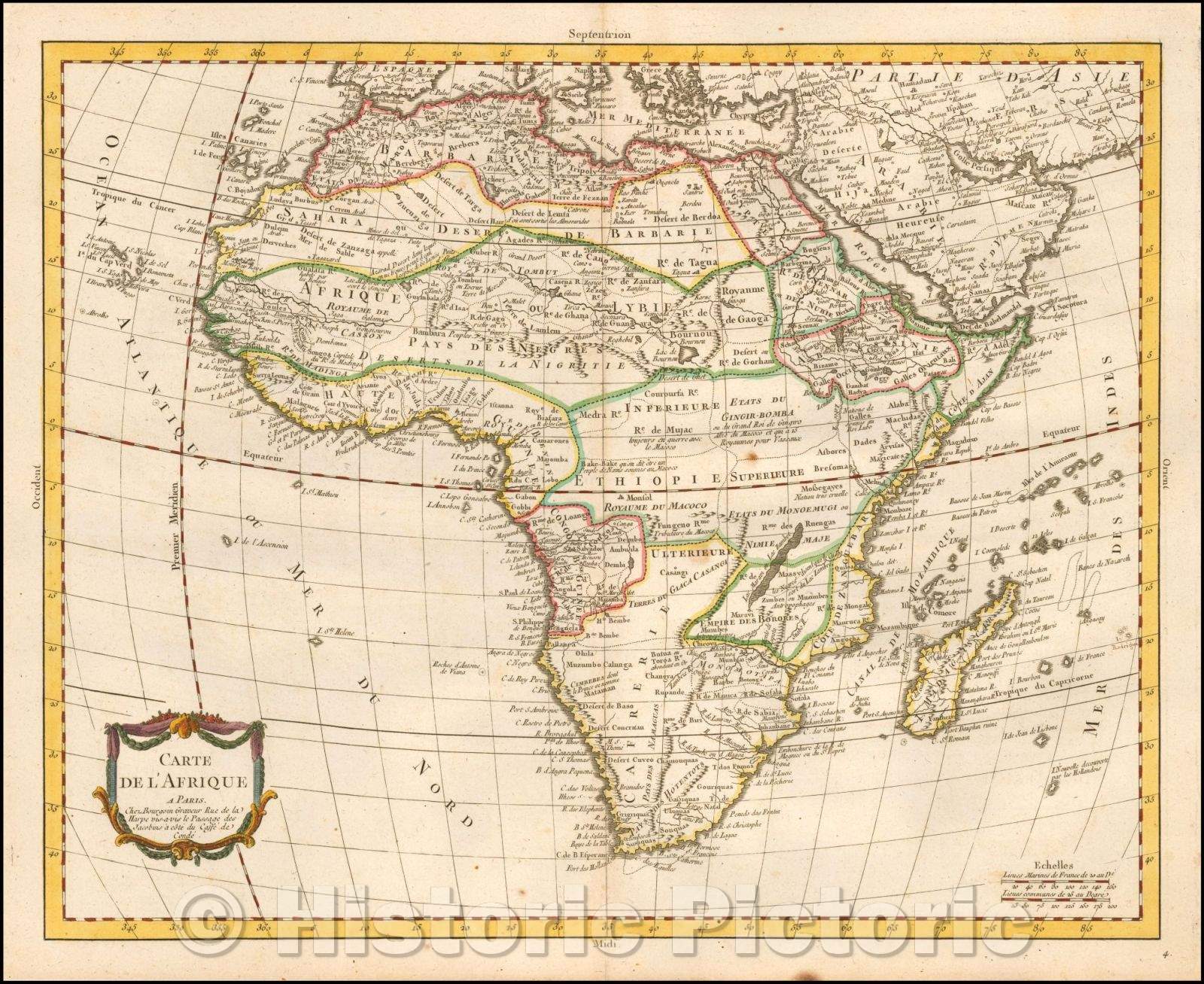Historic Map - Carte L'Afrique/Map of Africa, published in Paris by Pierre Bourgoin, 1743, Pierre Bourgoin - Vintage Wall Art
