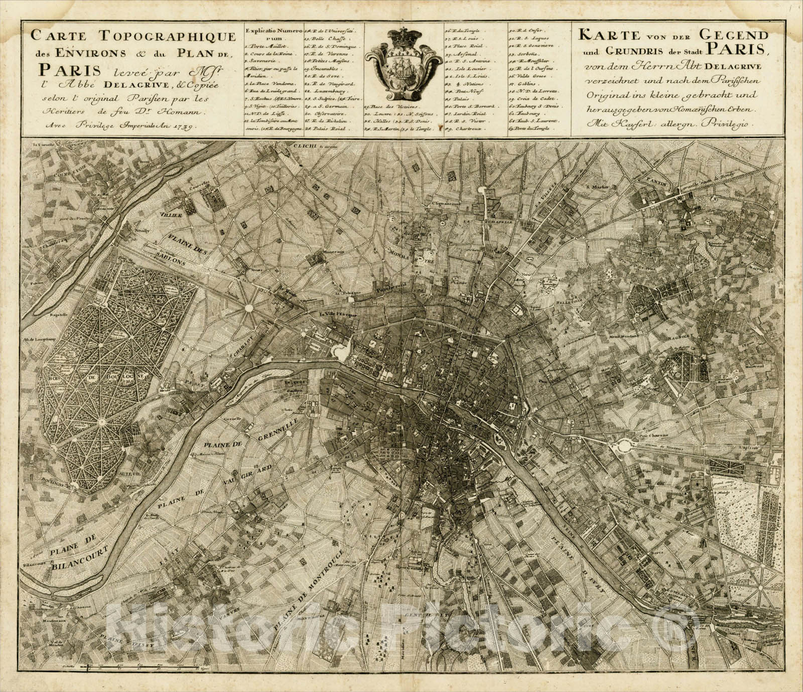 Carte Topographique des Environs & du Plan de Paris levee par Mr. l'Abee Delarive, 1739, 1739,