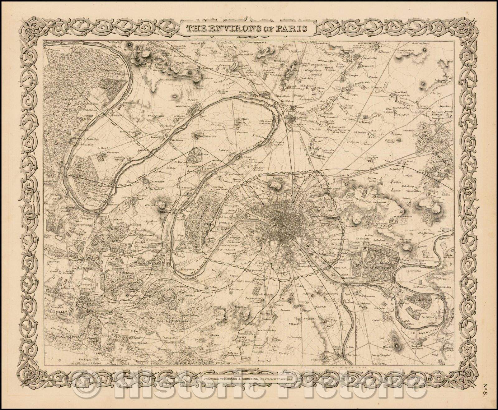 Historic Map - The Environs of Paris, 1855, Joseph Hutchins Colton v2