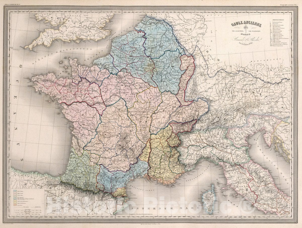 Historic Map : France, Gaule Ancienne : Dresse par A.H. Dufour. 1863. Gravee par Ch. Dyonnet. Paris, 60. La Lettre gravee par Deletre, 1863 Atlas , Vintage Wall Art