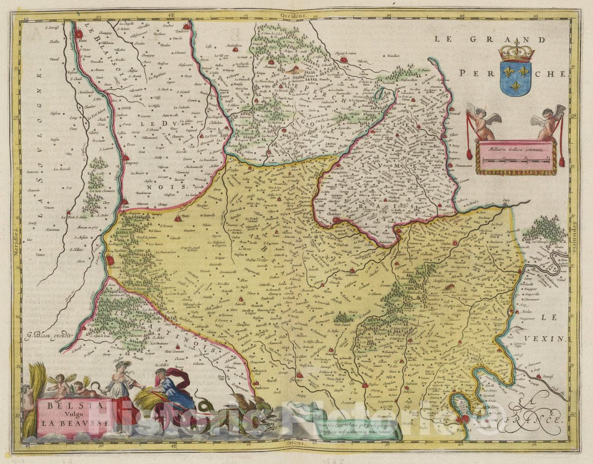 Historic Map : France, Paris Region , France Belsia, vulgo La Beavsse, 1665 Atlas , Vintage Wall Art