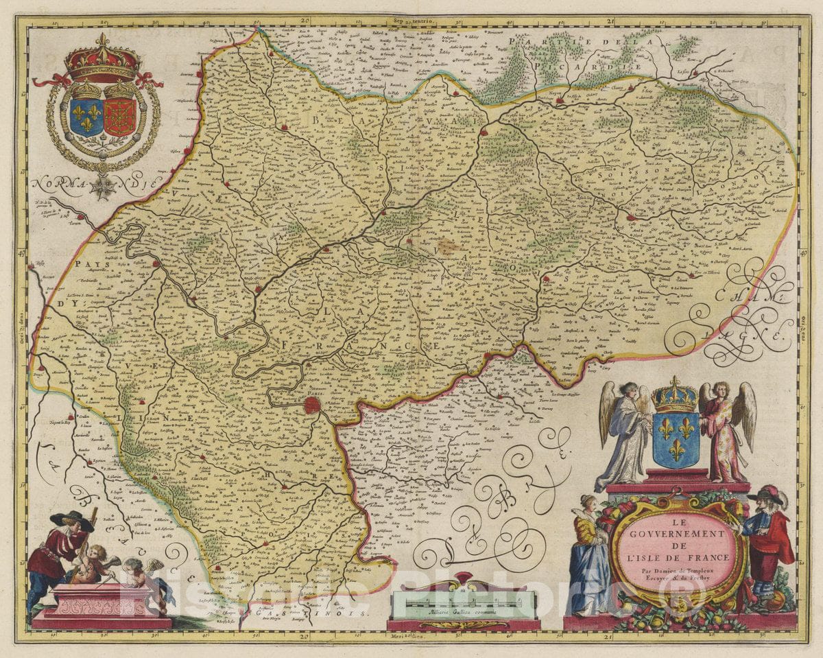 France, Paris Region, France Le Govvernement De L'Isle De France, 1665 Atlas , Vintage Wall Art