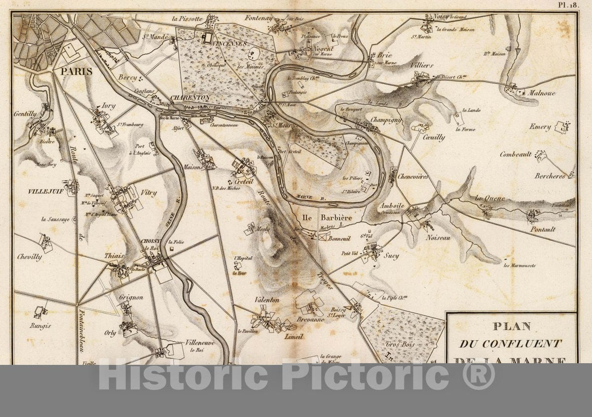 Historic Map : France, Paris Region , France Plan du confluent de la Marne. Grave par Ambroise Tardieu, 1827 Atlas , Vintage Wall Art