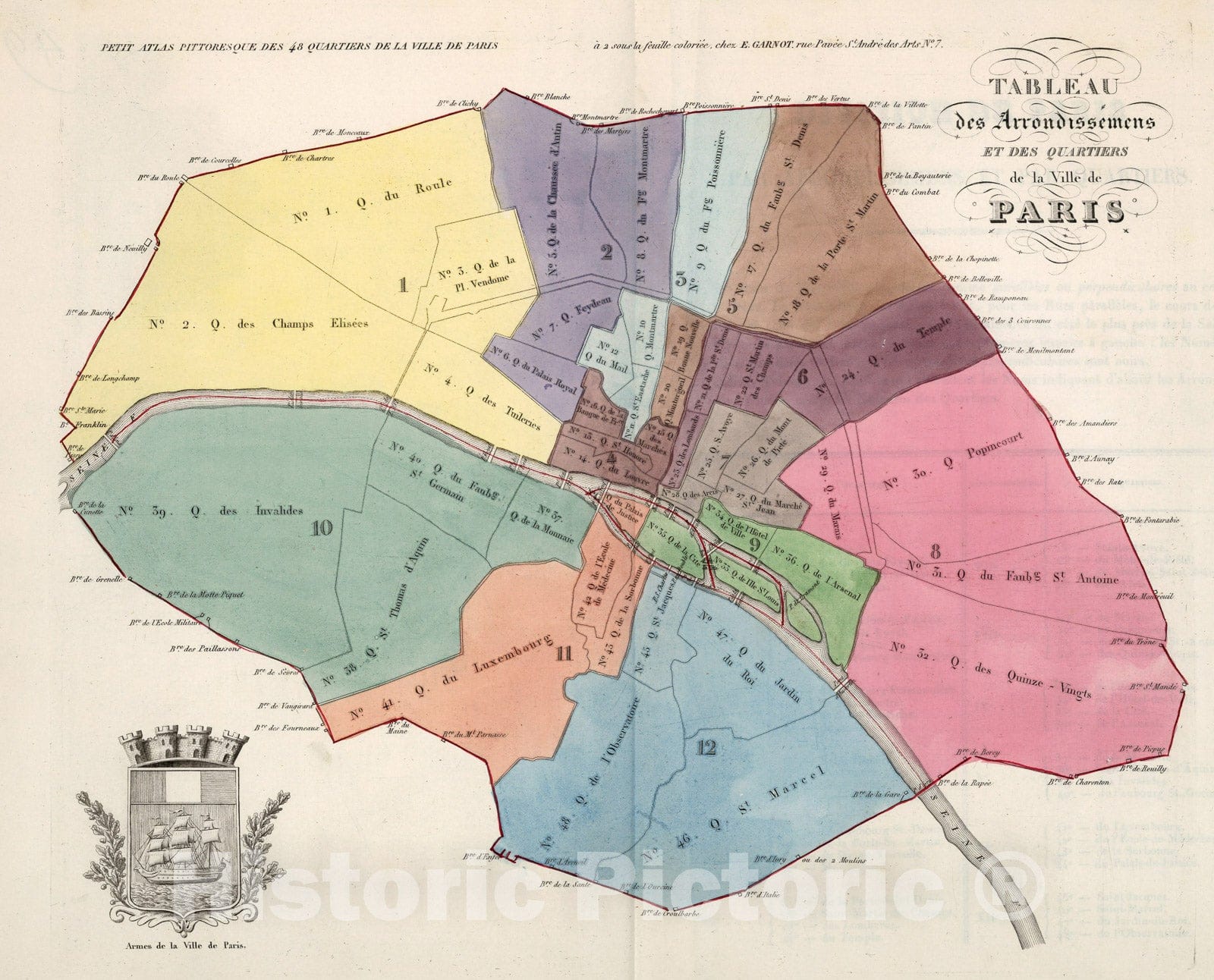 Historic Map : Index: Tableau des arrondissemens et des quartiers de la Ville de Paris, 1834, Vintage Wall Decor