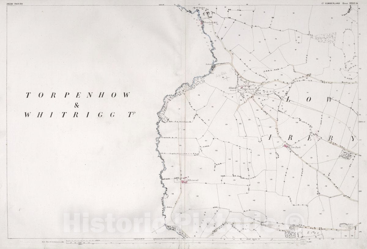 • .Historic Map : Ireby Parish. Co. Cumberland. Sheet XXXVI.16, 1865 Atlas - Vintage Wall Art