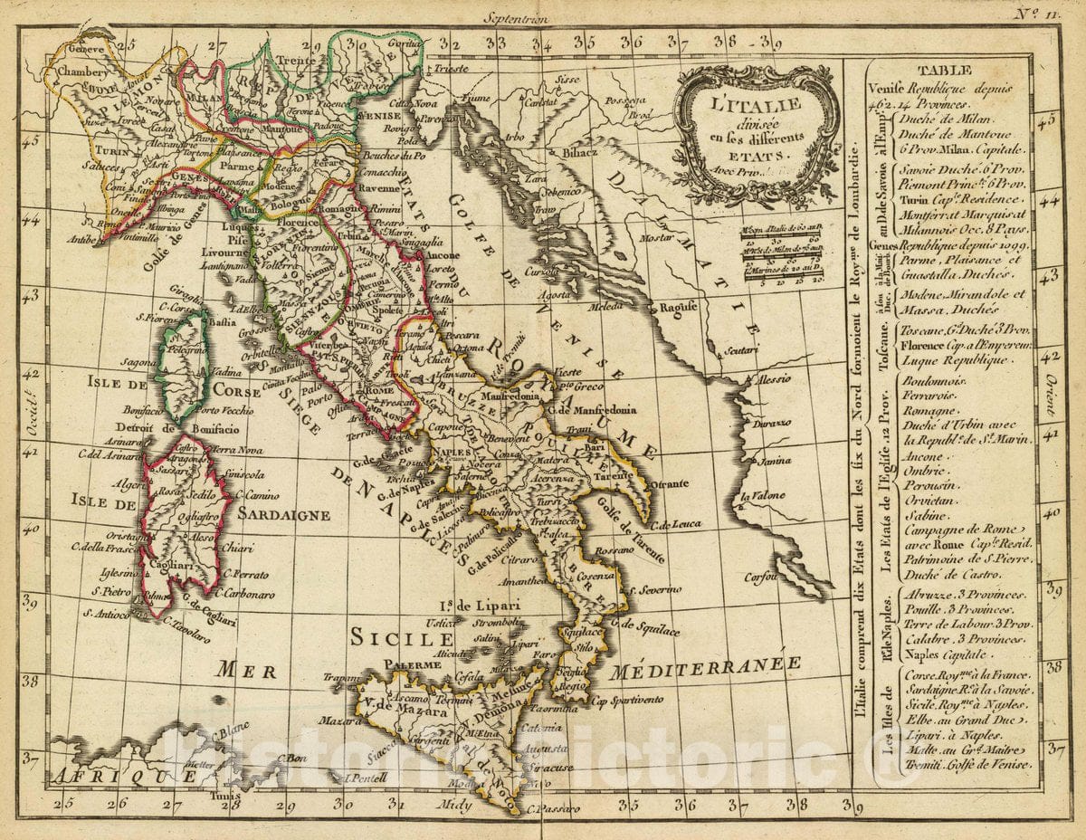 Historic Map : Italy, L'Italie divisee en SES differents etats. Avec priv. (A Paris, Chez Delamarche, Geogr, ca. 1800), 1800 Atlas , Vintage Wall Art