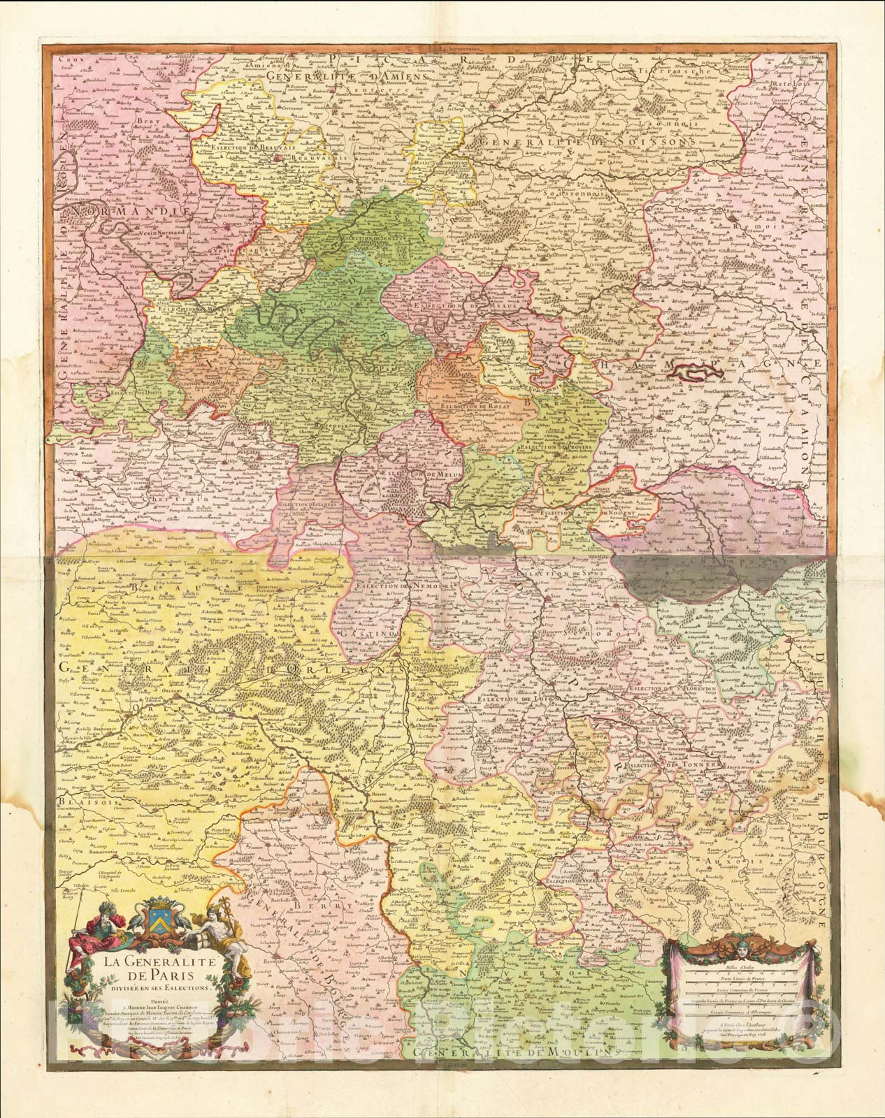 Historic Map : La Generalite De Paris Divisee En Se Eslections, 1708, 1708, Alexis-Hubert Jaillot, Vintage Wall Art