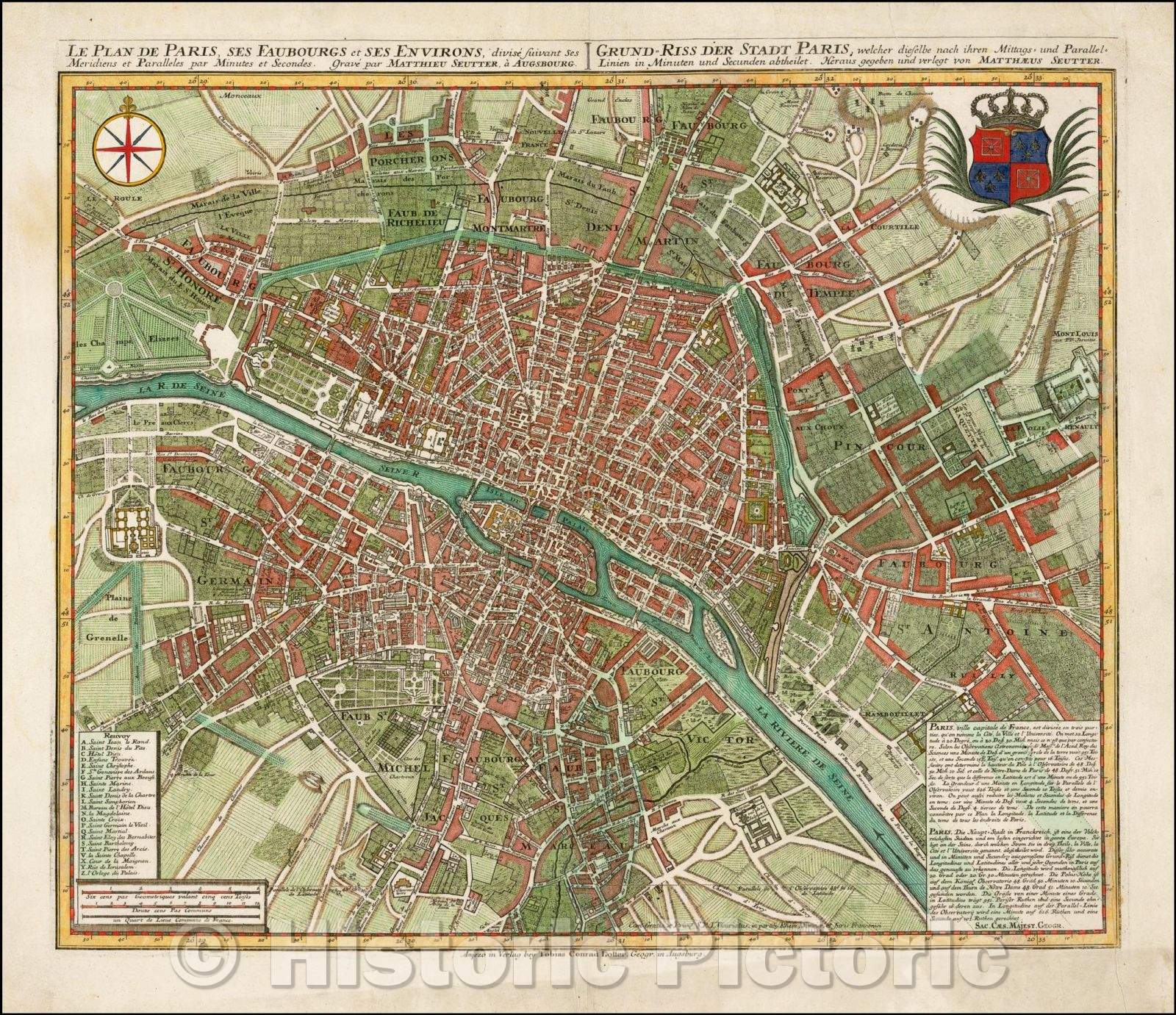 Le Plan De Paris, Ses Faubourgs, et ses Environs, divise suivant ses Meridians et Paralleles / Mid-18th Century Plan of Paris, 1730