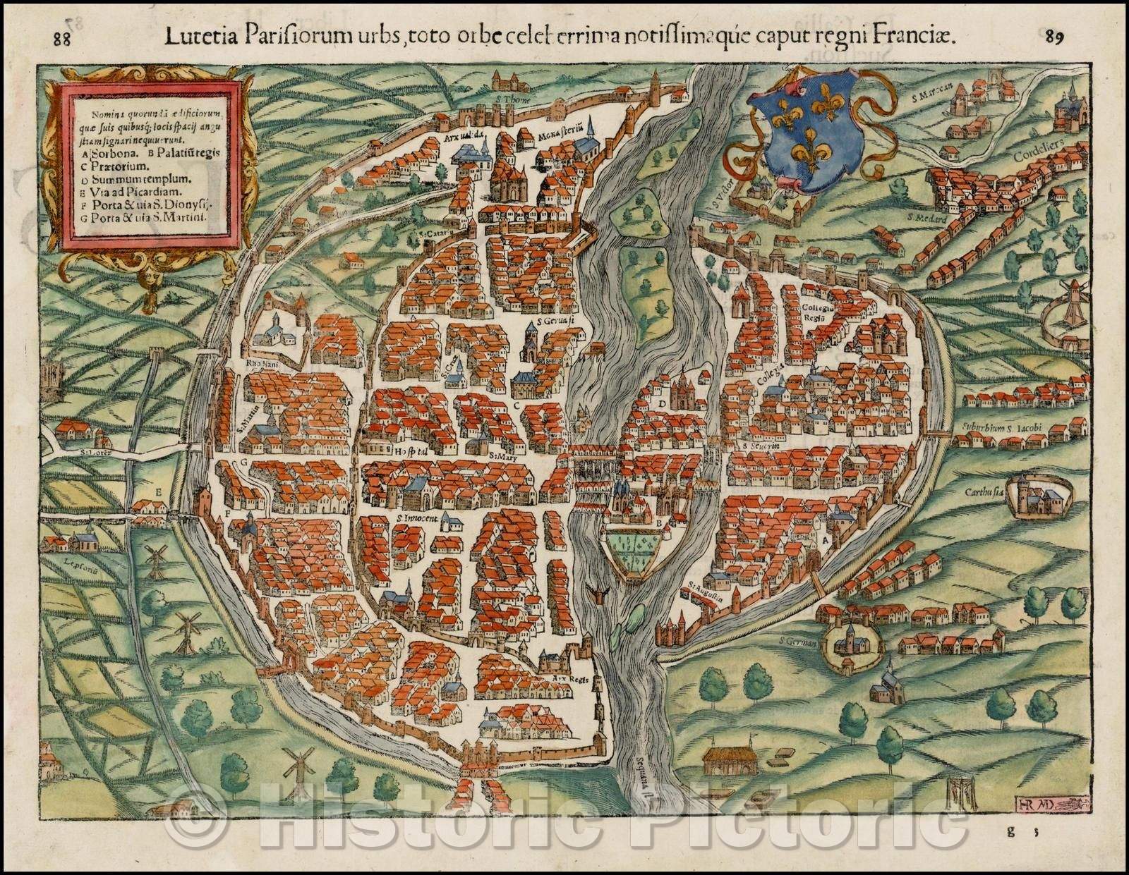 Historic Map - Lutetia Parisiorum urbs, toto orbe celeberrima notissimaque, caput regni F, 1552 - Vintage Wall Art