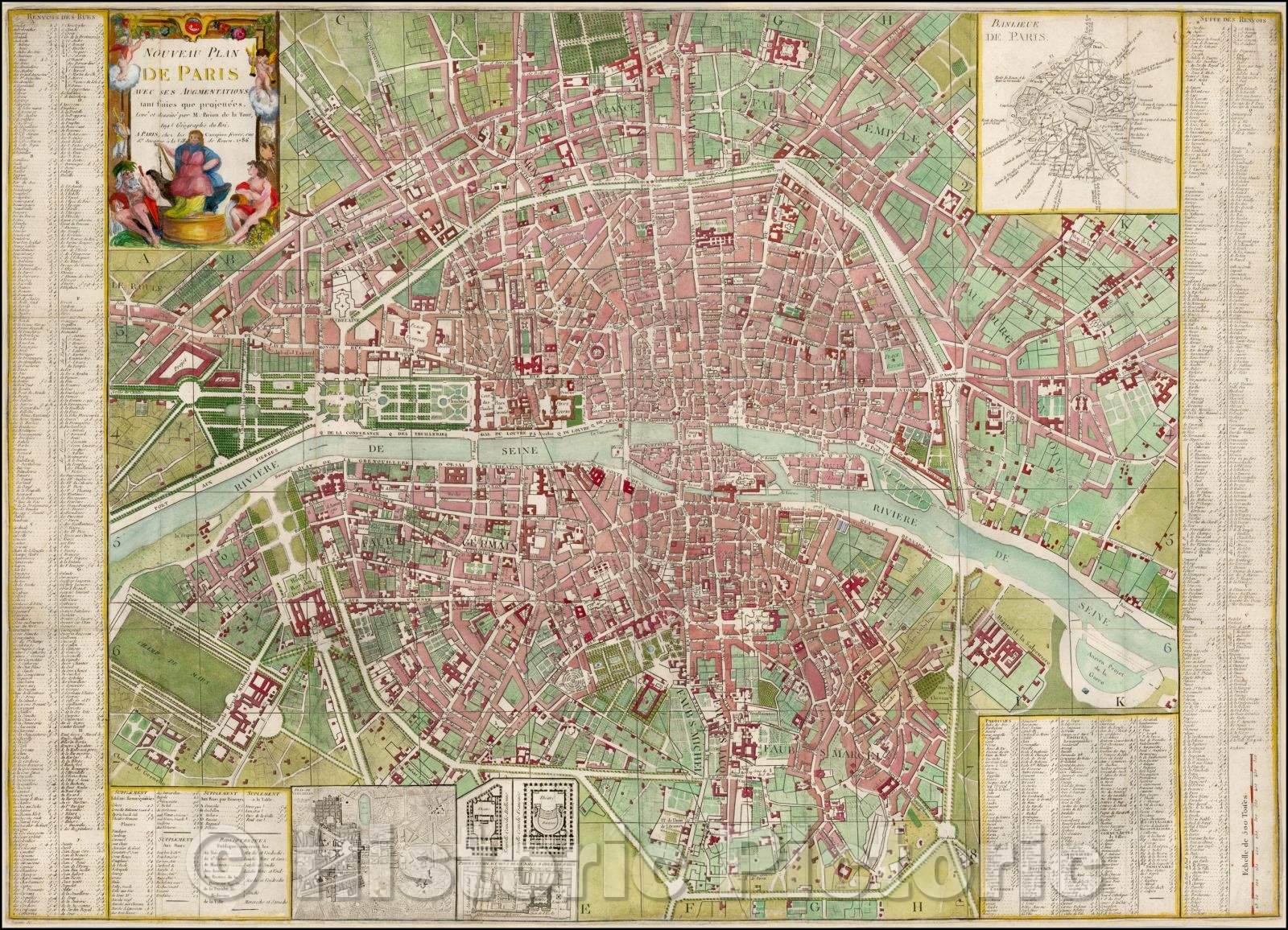 Historic Map - Nouveau Plan de Paris avec ses Augmentations 1786 / Plan of Paris on the eve of the French Revolution, centered on the Seine River, 1786 - Vintage Wall Art