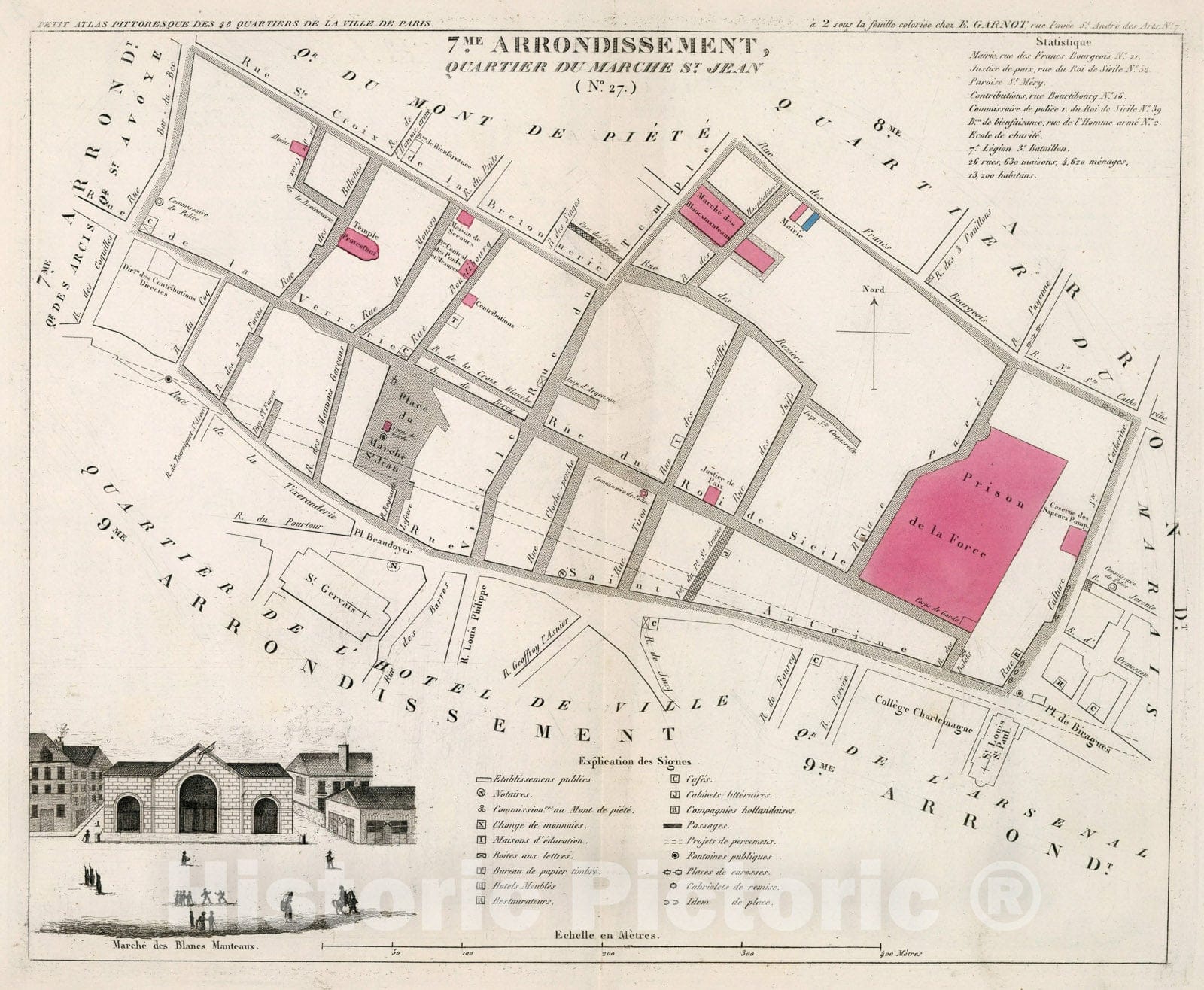 Paris 7Me. Arrondissement : Quartier du Marche St. Jean. No. 27, 1834, Vintage Wall Decor