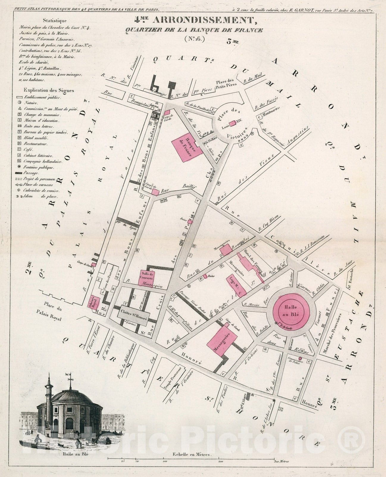Historic Map : Paris four Me. Arrondissement : Quartier de la Banque de France. No. (16), 183four, Vintage Wall Decor