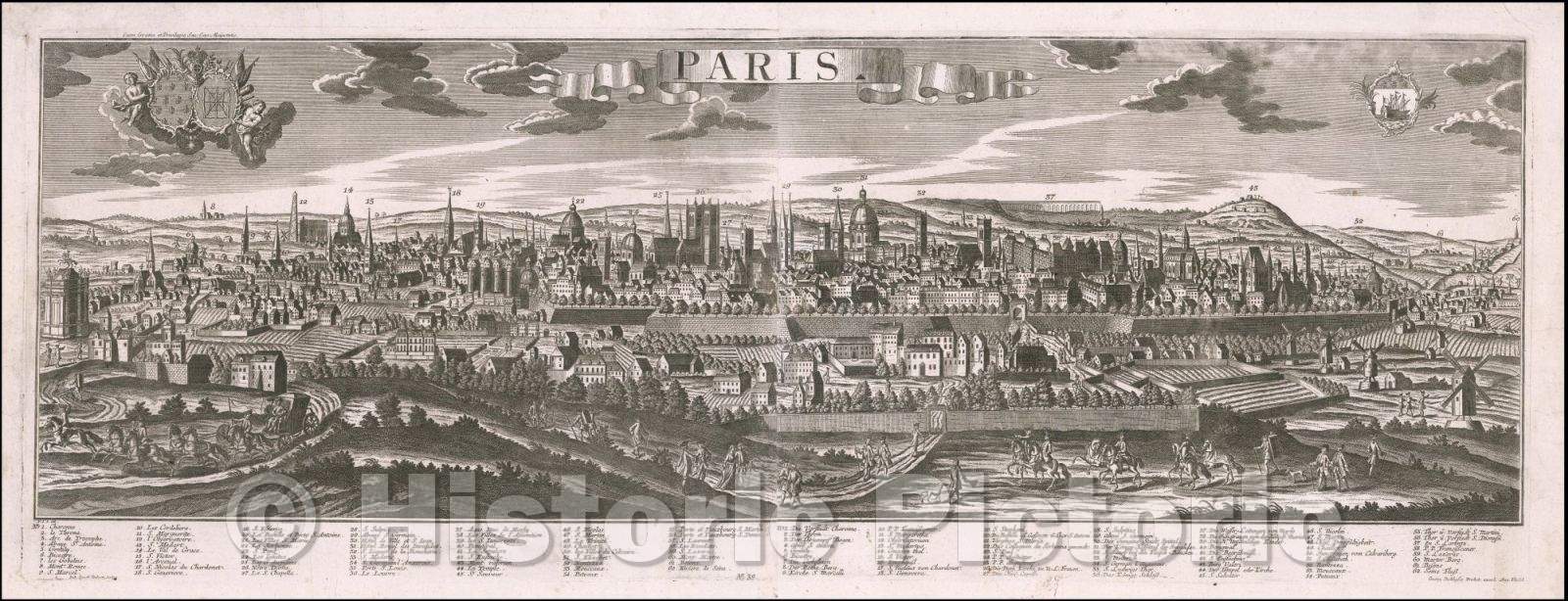 • .Historic Map - Paris, France, 1755, Georg Balthasar Probst - Vintage Wall Art