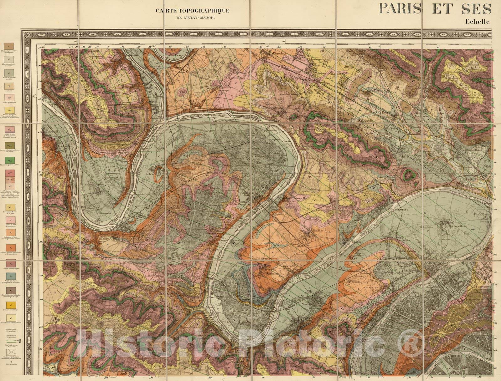 (Nord-Ouest) Paris Et Ses Environs. Carte Geologique Detaillee. Carte Topographique De L'Etat Major ... Baundry Et Cie. editeurs du Service de la Carte geologique detaillee de la France, 15, Rue des Saints-Peres a Paris. Erhard freres, imprimeurs, 35 bis, Rue Denfert-Rochereau, Paris. (embossed stamp) Service Geologique Des Mines. Ministere Des Travaux Publics. Mai 1890. | Paris Et Ses Environs. Carte Geologique Detaillee. Carte Topographique De L'Etat Major ... Baundry Et Cie. editeurs du Service de la Carte geologique detaillee de la France, 15, Rue des Saints-Peres a Paris. Erhard freres, imprimeurs, 35 bis, Rue Denfert-Rochereau, Paris. (embossed stamp) Service Geologique Des Mines. Ministere Des Travaux Publics. Mai 1890. | See note field above.