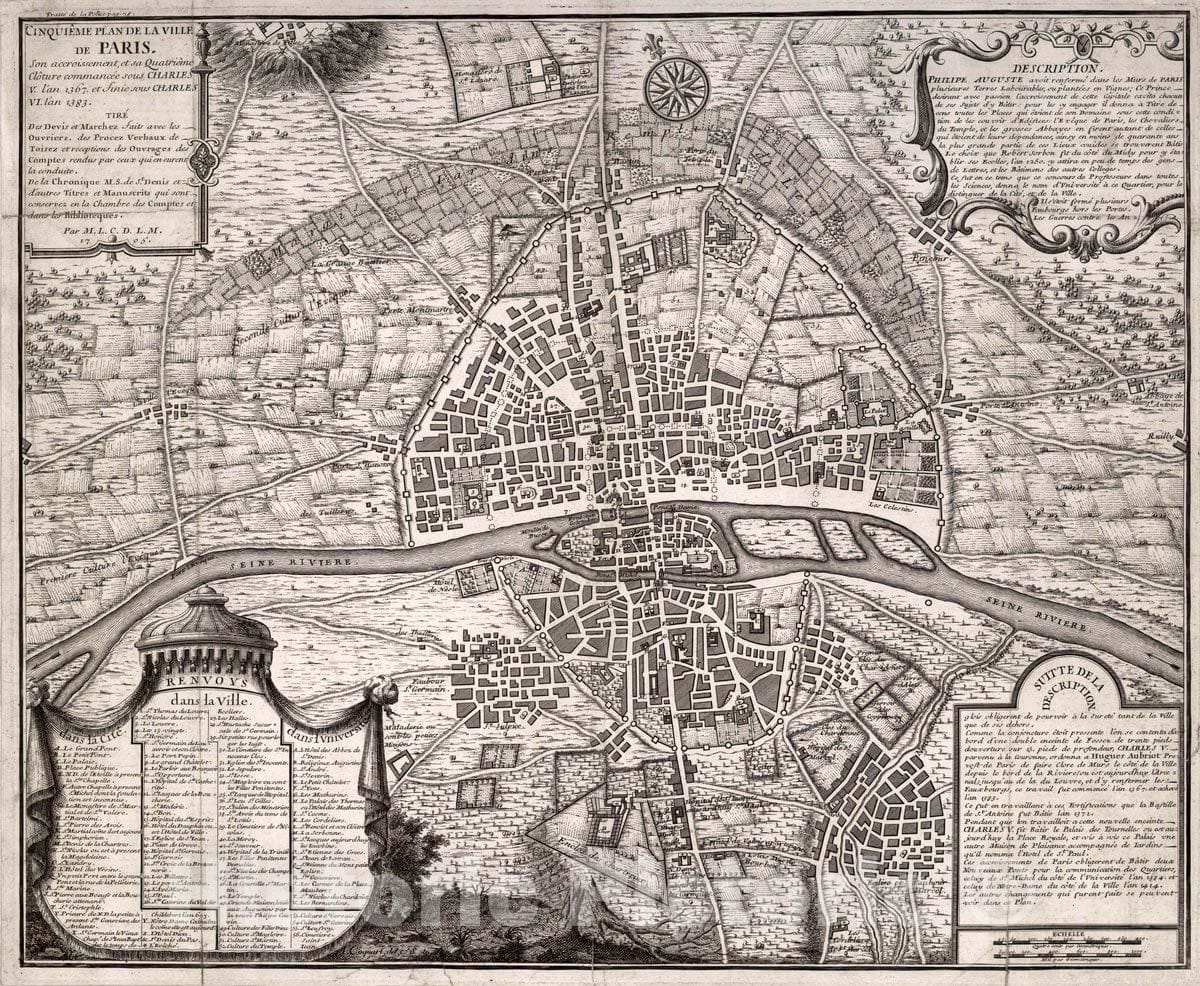 Historic Map : Paris , France, Cinquieme Plan de La Ville de Paris, 1705 City Atlas , Vintage Wall Art