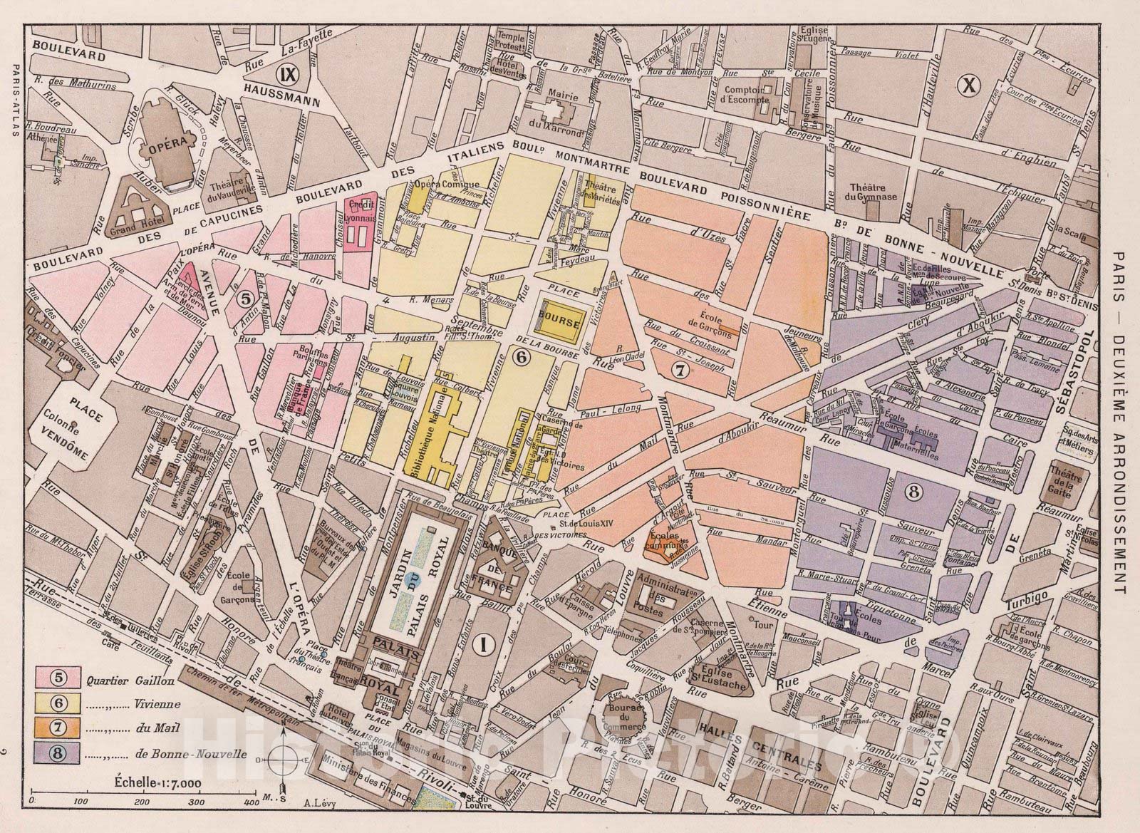 Historic Map : Paris , France, Paris (France), City Atlas Map, Paris - Deuxieme Arrondissement. 1900 , Vintage Wall Art