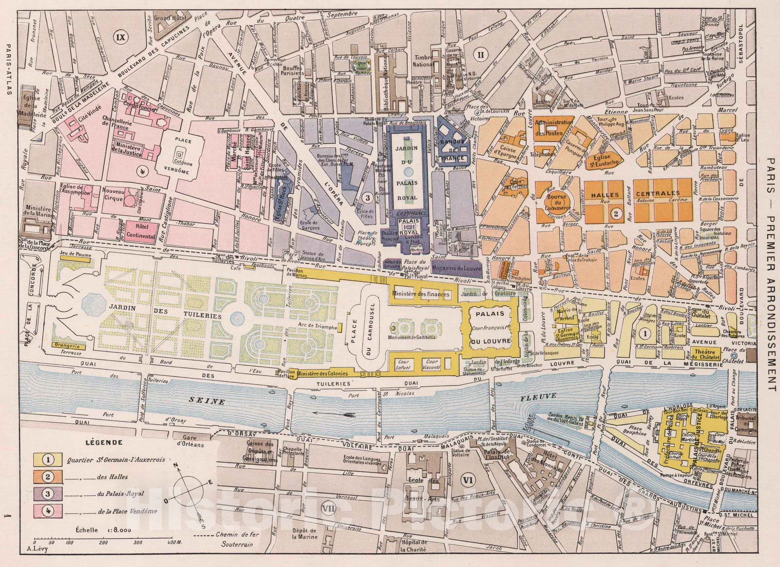 Historic Map : Paris , France, Paris (France), City Atlas Map, Paris - Premier Arrondissement. 1900 , Vintage Wall Art