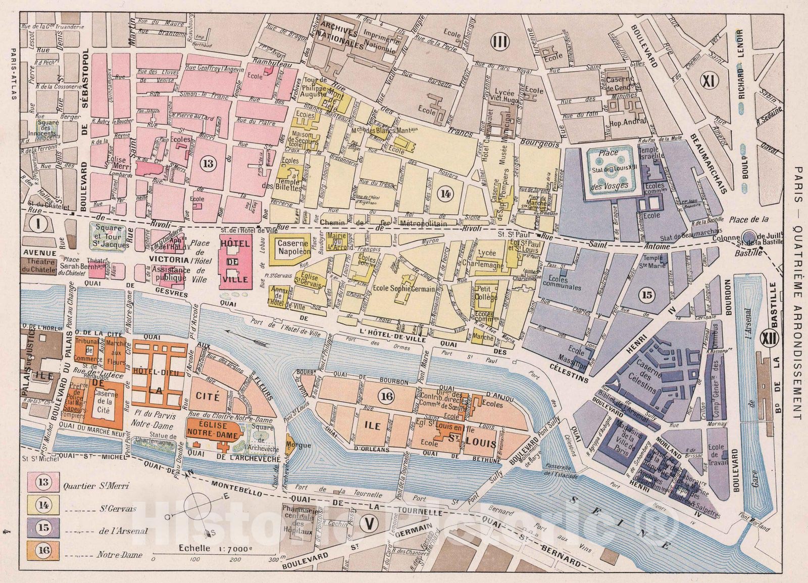 Historic Map : Paris , France, Paris (France), City Atlas Map, Paris - Quatrieme Arrondissement. 1900 , Vintage Wall Art