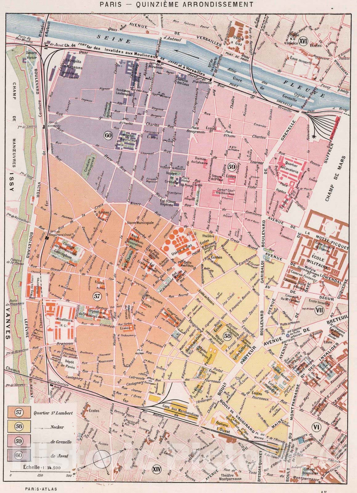 Historic Map : Paris , France, Paris (France), City Atlas Map, Paris - Quinzieme Arrondissement. 1900 , Vintage Wall Art