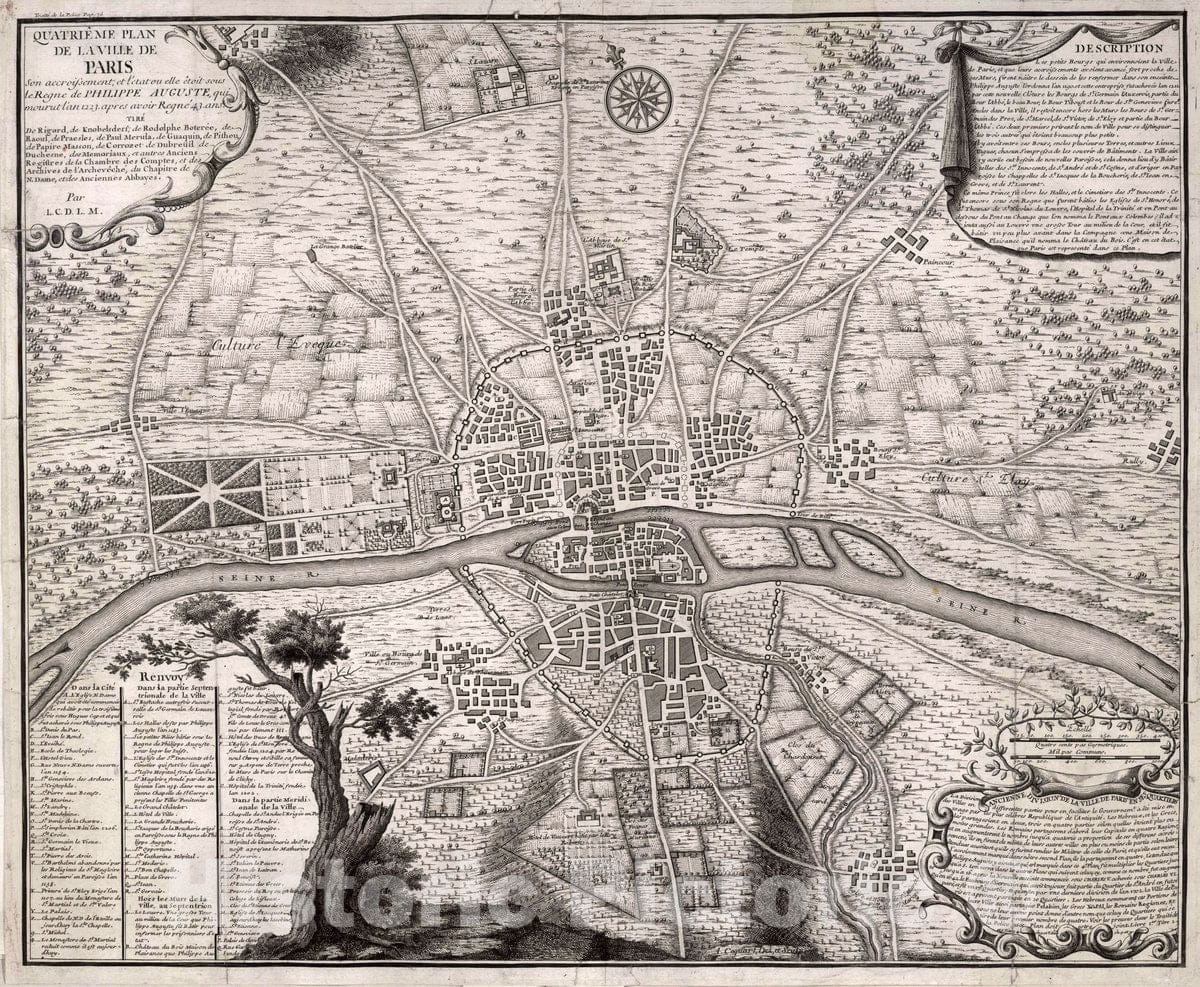 Historic Map : Paris , France, Quatrieme Plan de La Ville de Paris, 1705 City Atlas , Vintage Wall Art