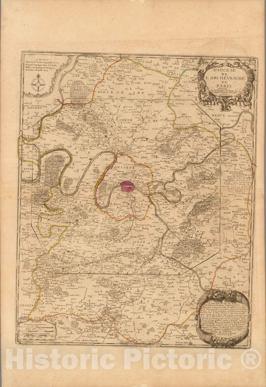 Historic Map : Paris , France, Region FranceDiocese De L'Archevesche De Paris. 1714 , Vintage Wall Art