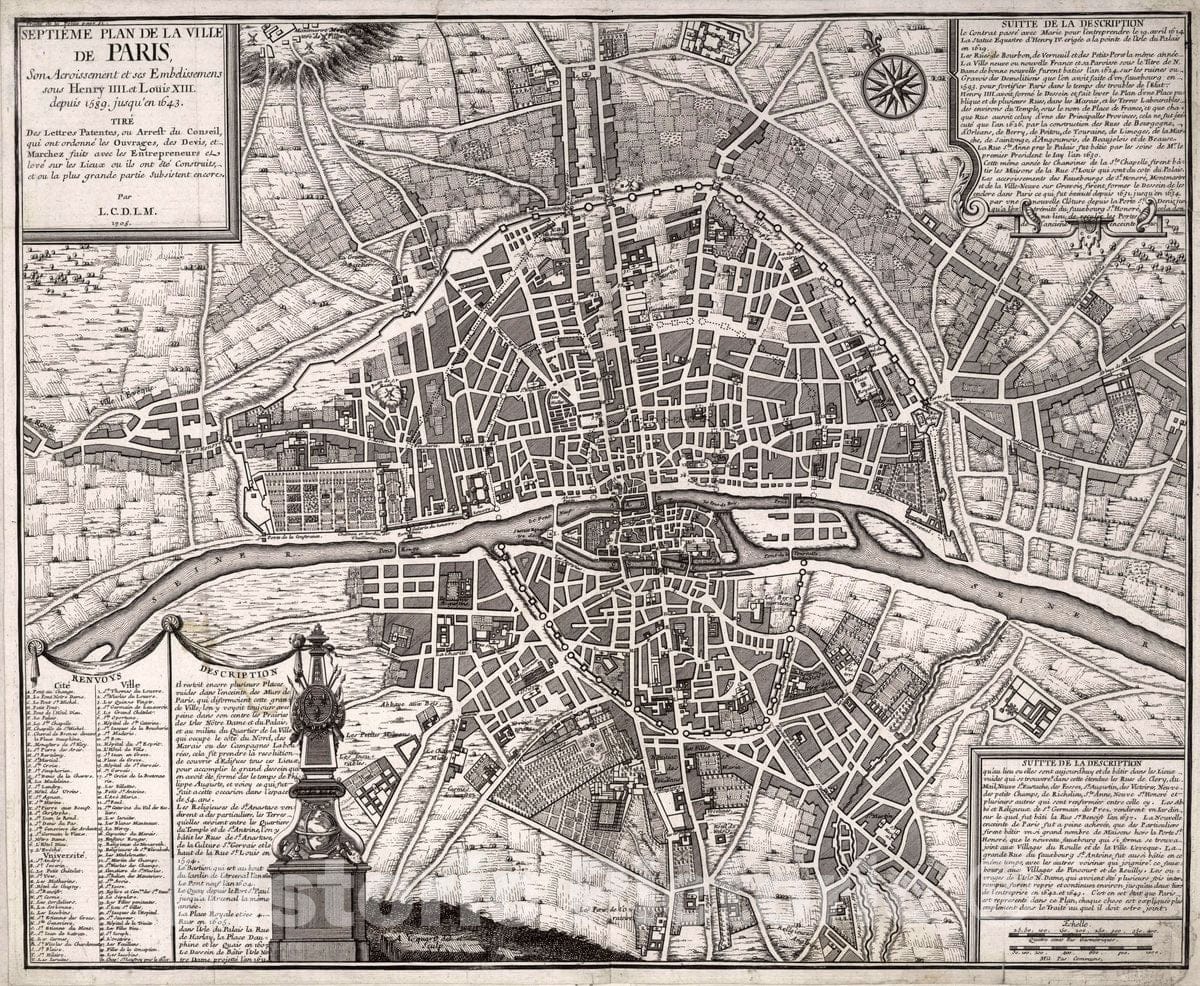 Historic Map : Paris , France, Septieme Plan de La Ville de Paris, 1705 City Atlas , Vintage Wall Art