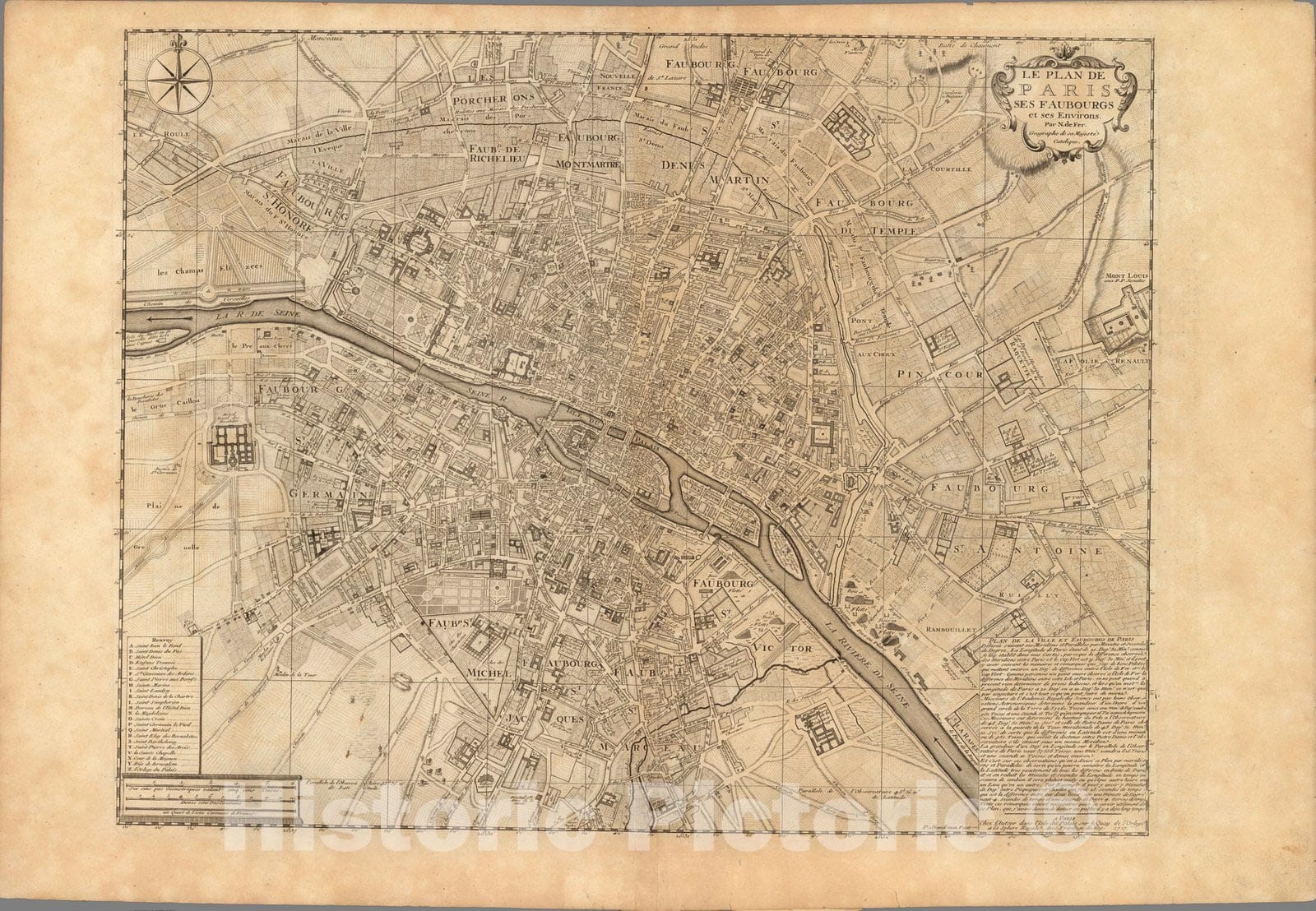 Historic Map : Paris , France,Le Plan De Paris Ses Faubourgs et ses Environs. 1717 , Vintage Wall Art