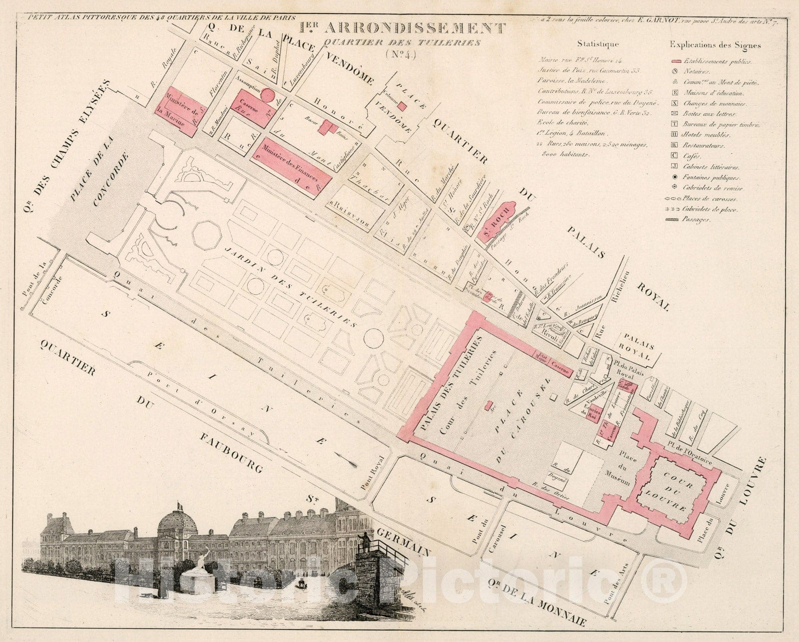 Paris I Er. Arrondissement : Quartier des Tuileries. No. 4, 1834, Vintage Wall Decor