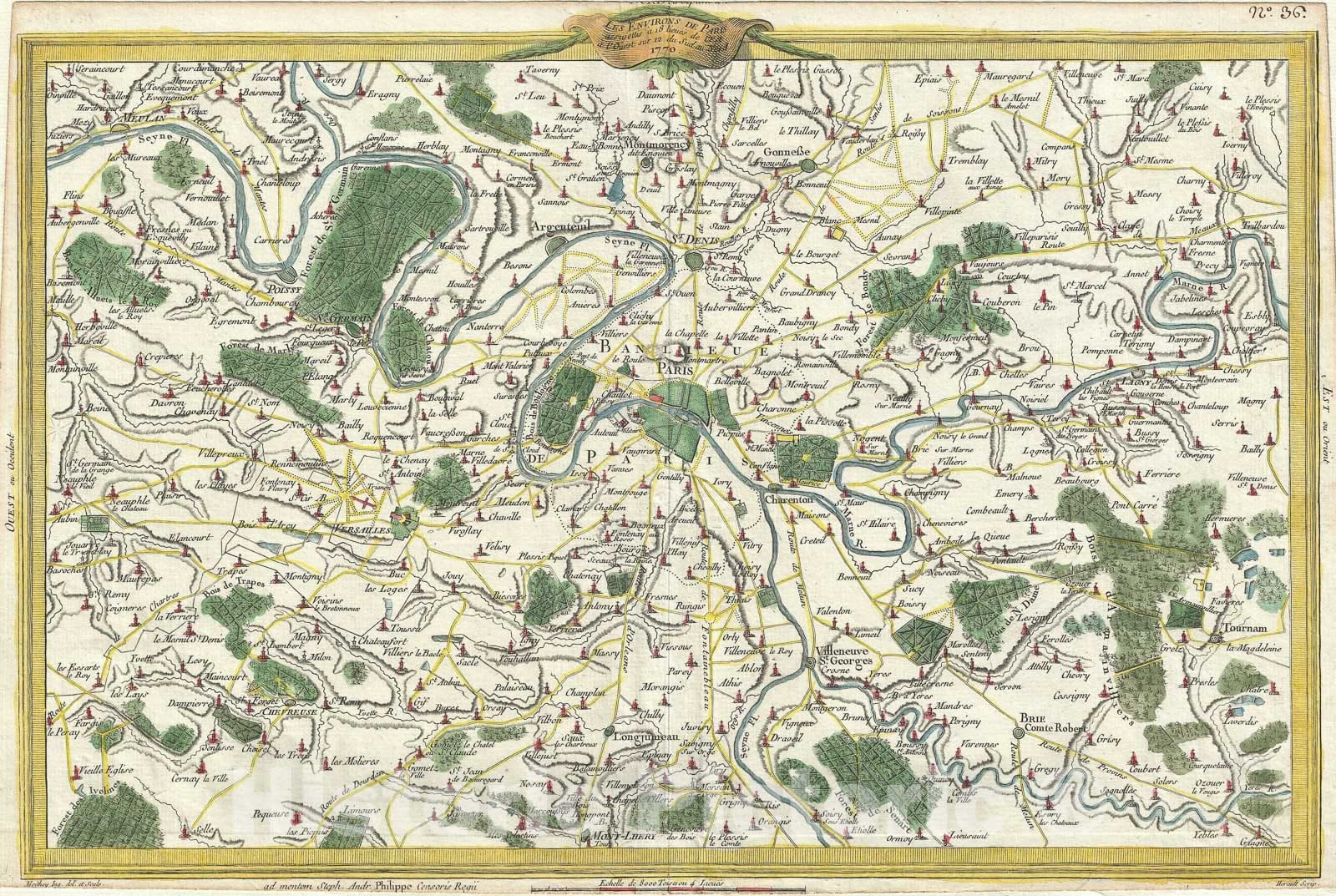 • .Historic Map : Paris and its Environs, France, Philippe de Pretot, 1770, Vintage Wall Art