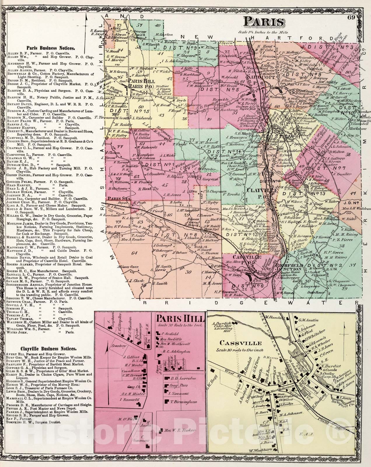 Historic Map : Paris, Oneida County, New York. Paris Hill. Cassville., 1874, Vintage Wall Art