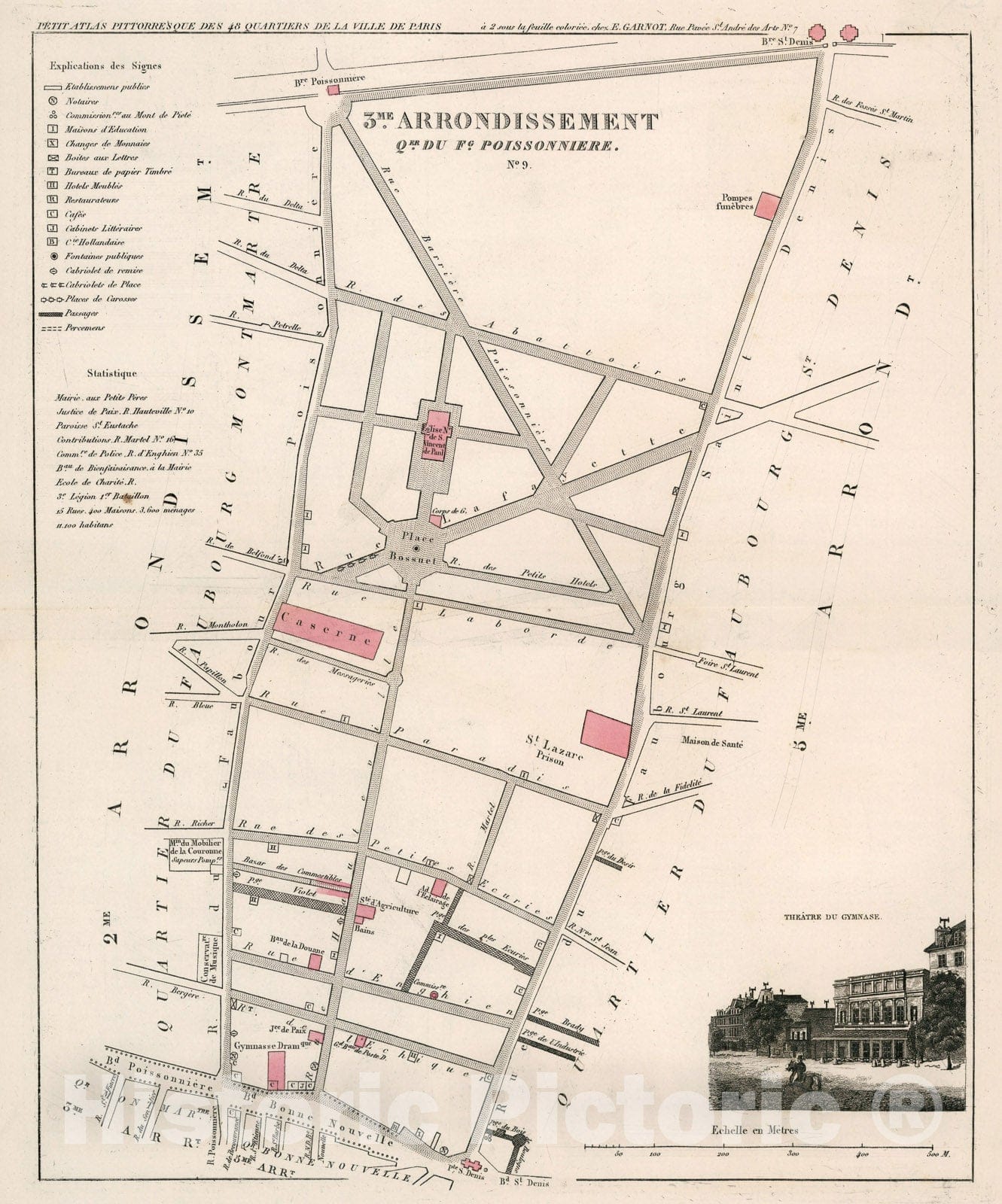 • .Historic Map : Paris three Me. Arrondissement : Qer. Fg. Poissonniere. No. 9, 18three4, Vintage Wall Decor