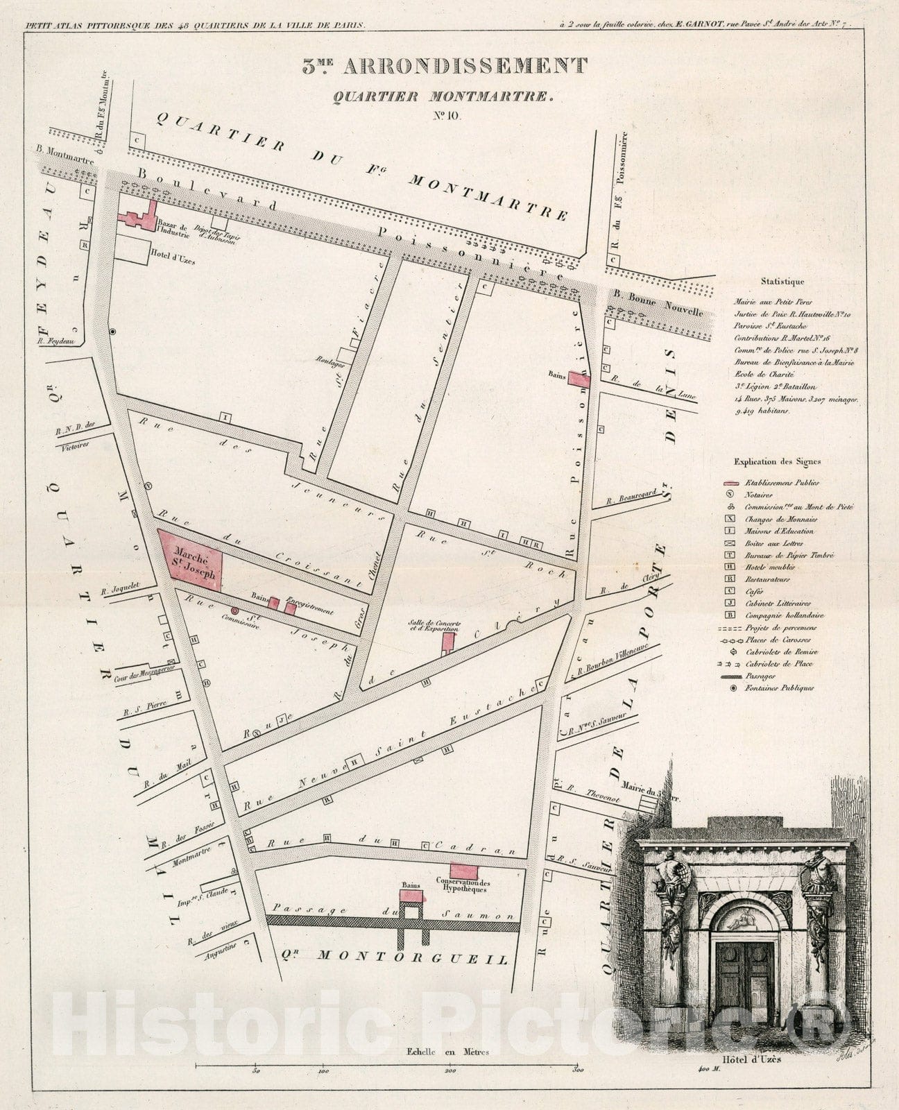 Historic Map : Paris three Me. Arrondissement : Quartier Montmartre. No. 10, 18three4, Vintage Wall Decor