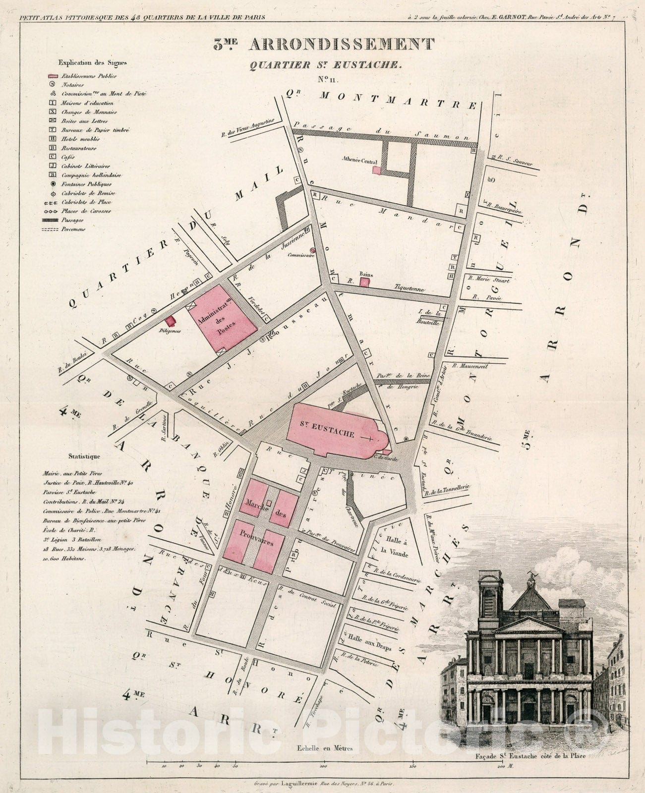 Historic Map : Paris three Me. Arrondissement : Quartier St. Eustache. No. 11, 18three4, Vintage Wall Decor