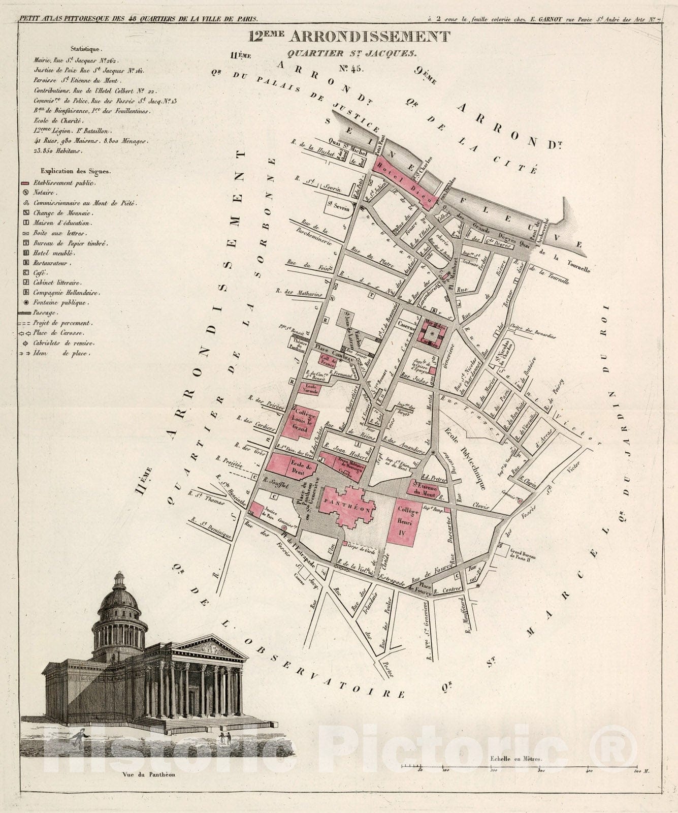 • .Historic Map : Paris twelve Eme. Arrondissement : Quartier St. Jacques. No. 45, 1834, Vintage Wall Decor