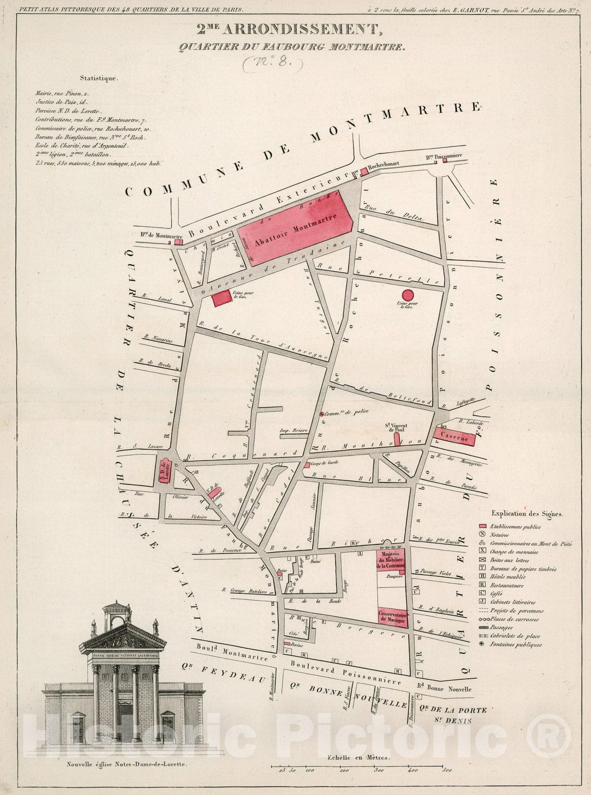 Historic Map : Paris two Me. Arrondissement : Quartier du Faubourg Montmartre. (No. 8), 1834, Vintage Wall Decor
