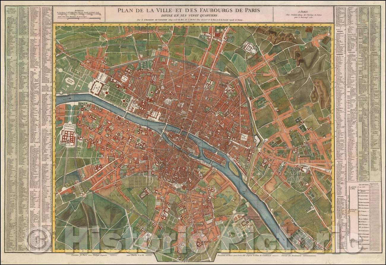 Historic Map - Plan de la Ville et des Faubourgs De Paris Divise en ses Vingt Quartiers, 1760, Gilles Robert de Vaugondy v1
