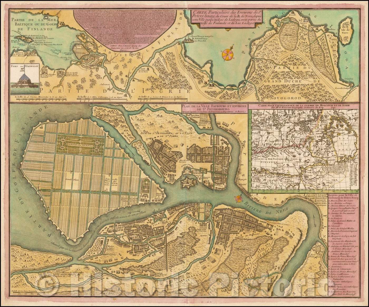 Historic Map - Plan de la Ville Faubourg et Environs De St. Petersbourg apresent Cap :: Plan of St. Petersburg, engraved by Durand, Paris by Jean de Beaurain, 1741 - Vintage Wall Art