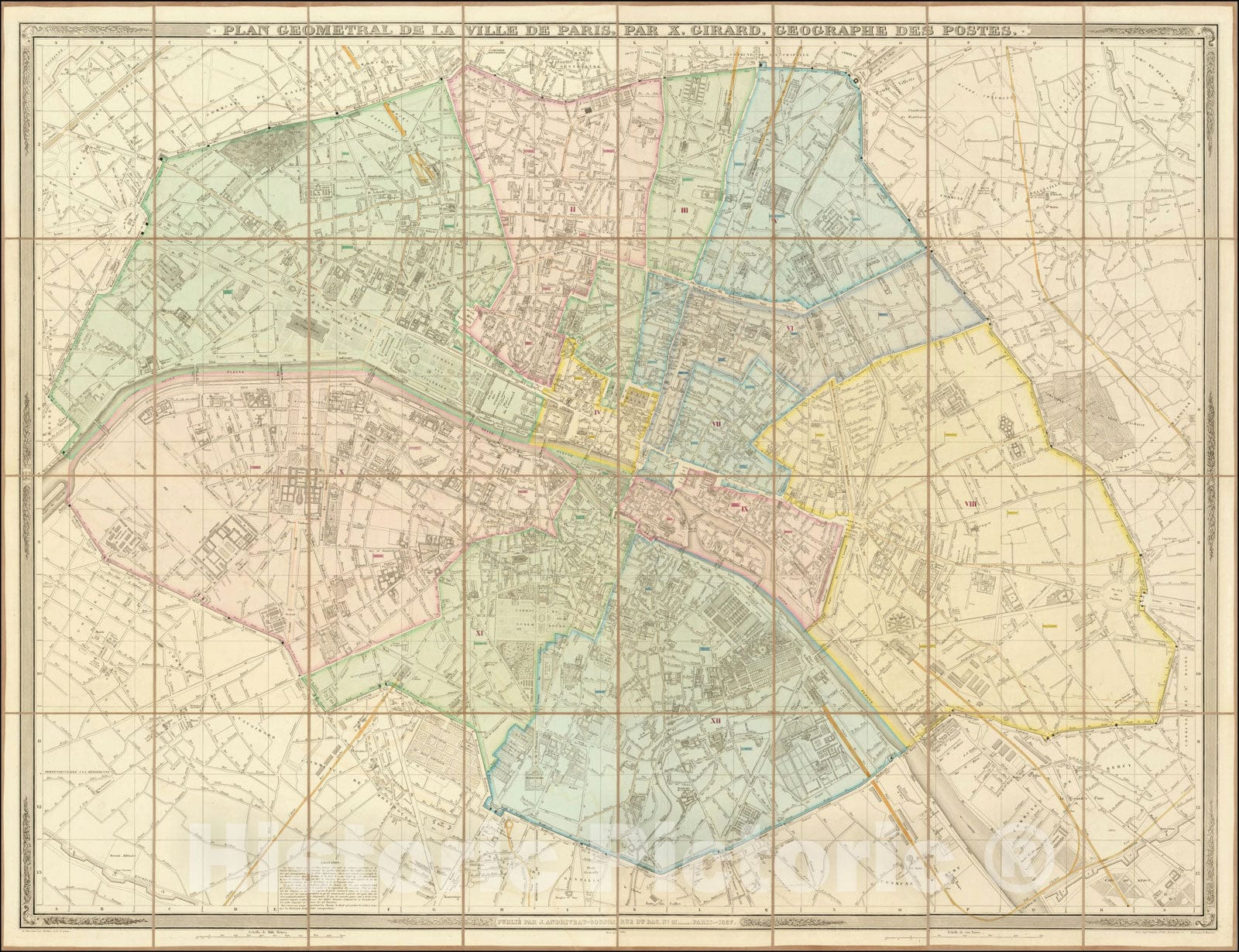 Historic Map : Plan Geometral De La Ville De Paris, Par X. Girard, Geographe Des Postes 1857, 1857, Xavier Girard, Vintage Wall Art