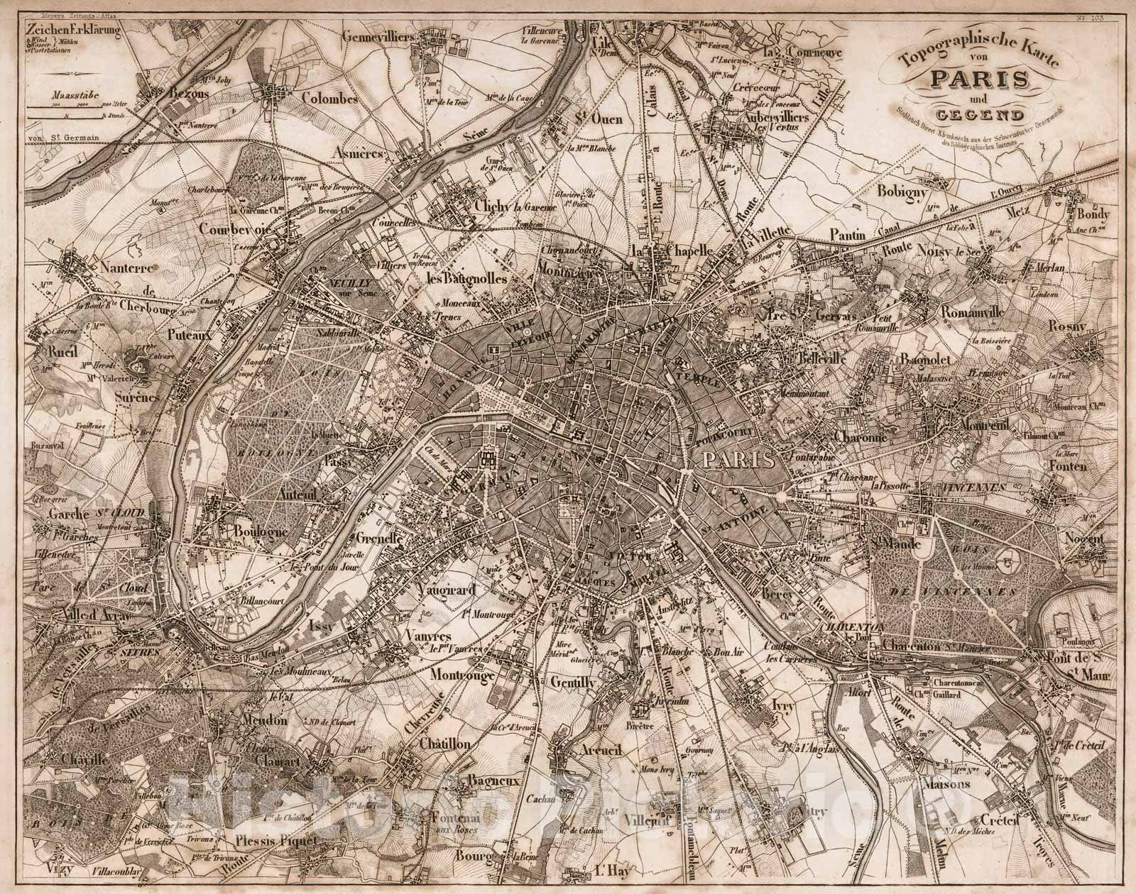 Historic Map : Topographische Karte von Paris und Gegend, 1852, Vintage Wall Decor