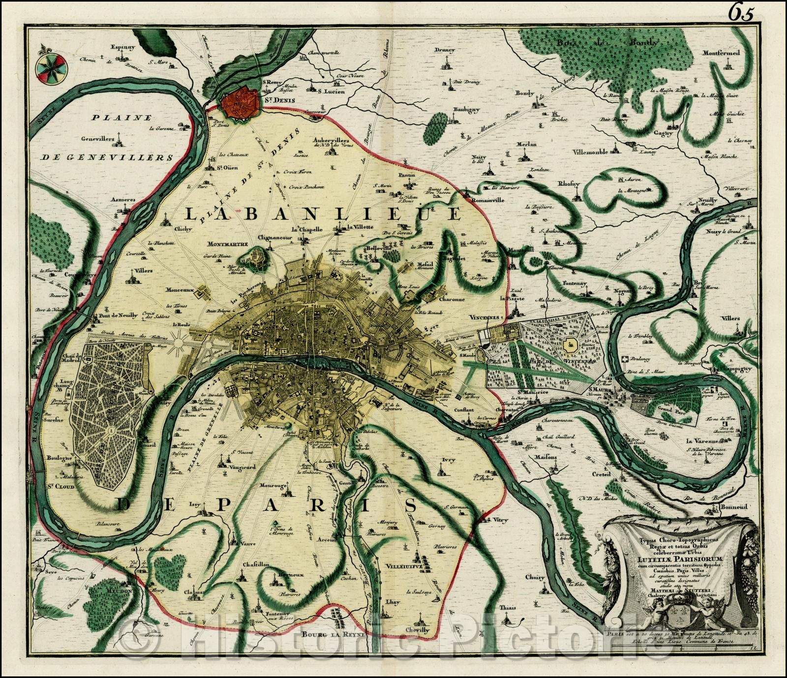 Historic Map - Typus Choro-Topographicus Regiae et totius Orbis celebrimmae/Map of environs of Paris in 1730, metropolitan France, to St. Denis, 1730 - Vintage Wall Art