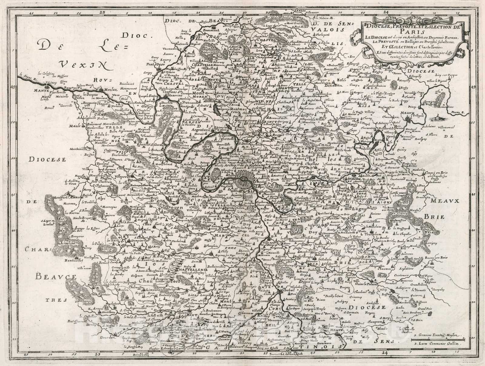 Historic Map : V. 1. Diocese, prevoste, et eslection de Paris, 1663, Vintage Wall Decor