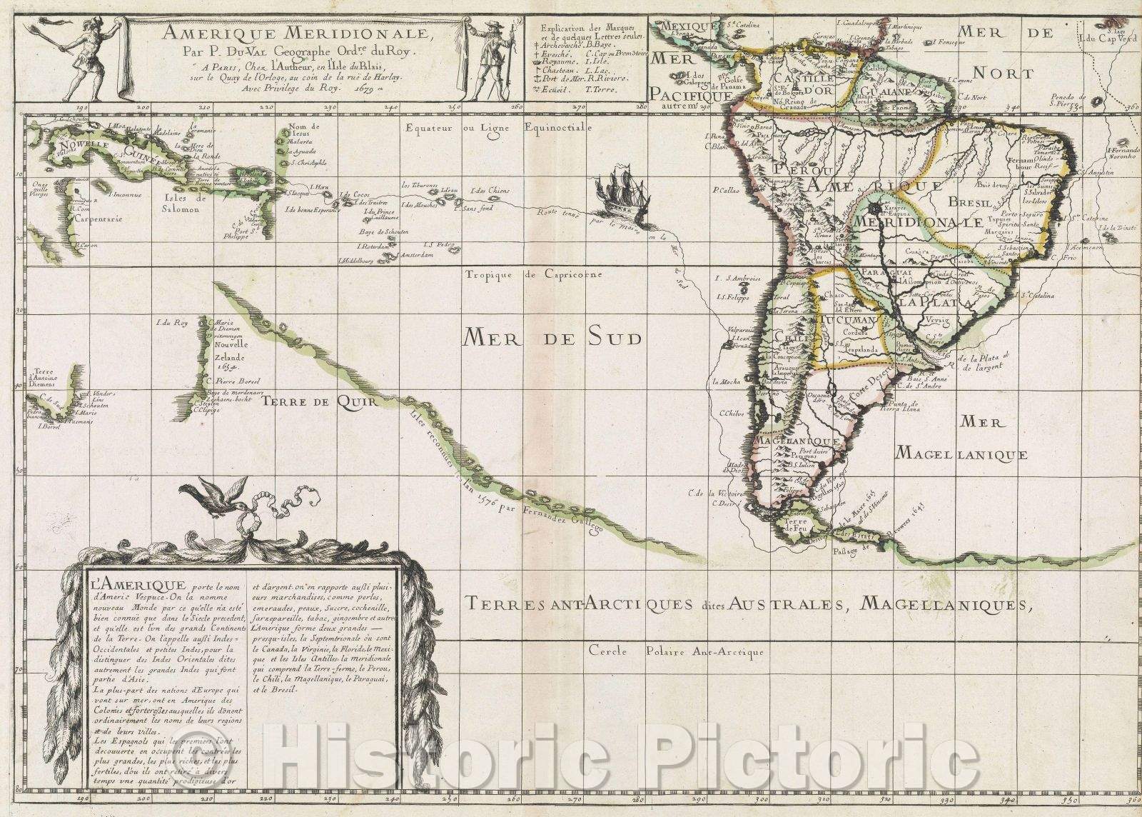 Historic Map : Amerique Meridionale Par P. Du Val Geographe Ordre du Roy. A Paris, Chez l'Autheur en l'Isle du Palais, sur le quay de l'Orloge,, 1679 , Vintage Wall Art