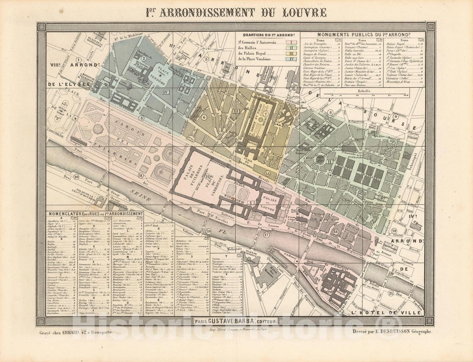 • .Historic Map : Europe, Paris 1860 1st Arrondissement , Vintage Wall Art
