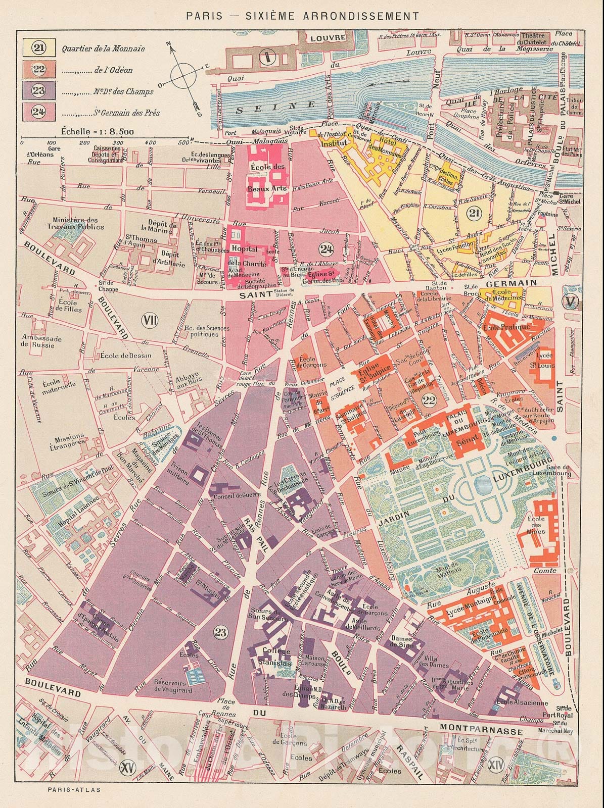 Historic Map : Europe, Paris 1900 6th Arrondissement , Vintage Wall Art
